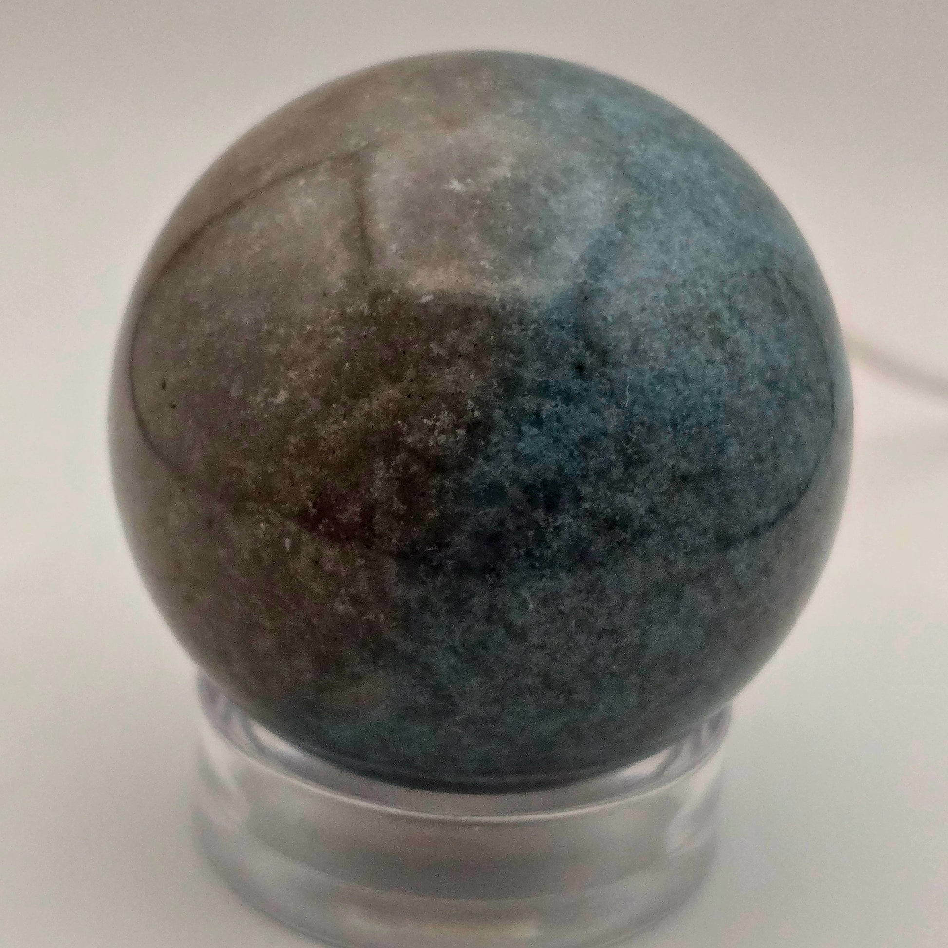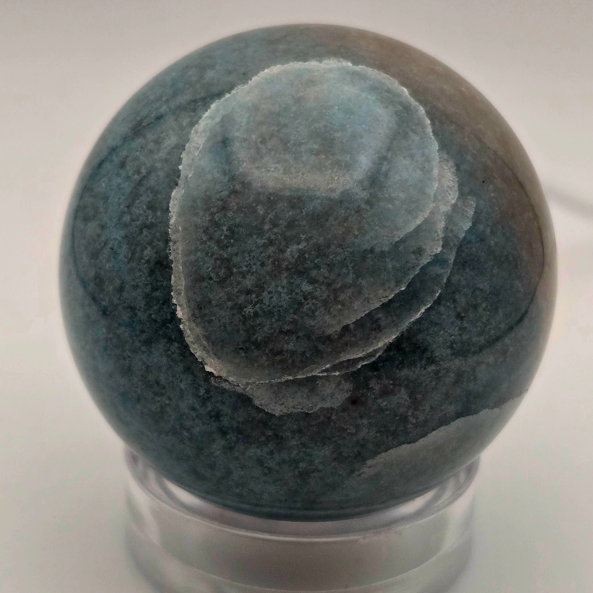 Whether displayed as a decorative accent in a home or office, used as a meditation aid, or simply admired for its natural beauty, the amazonite sphere is sure to enchant and inspire all who behold it.
