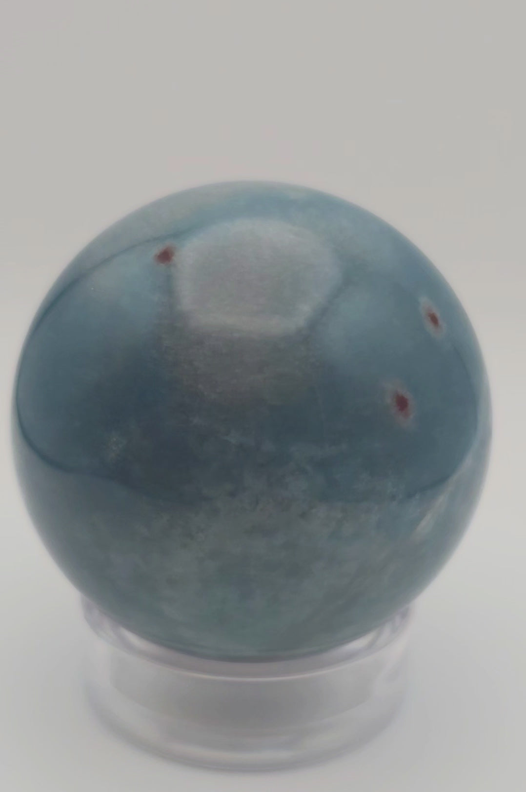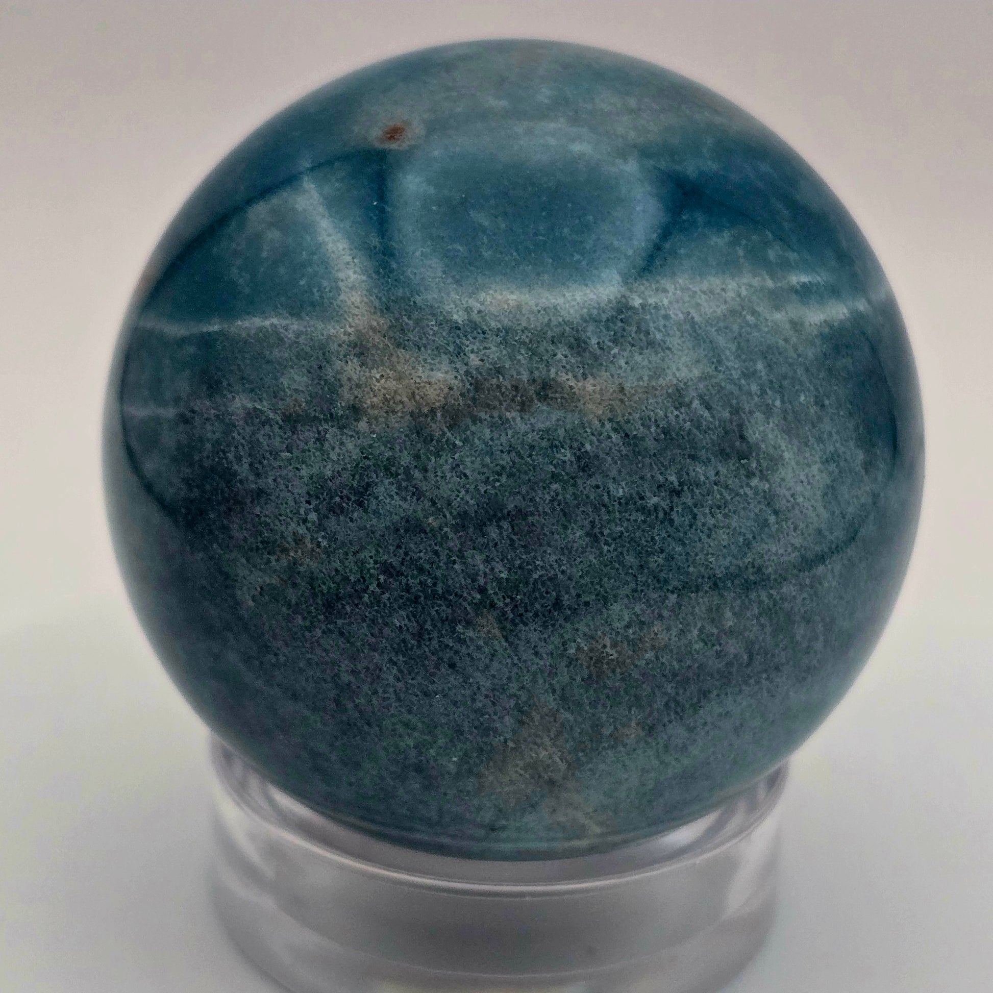Whether displayed as a decorative accent in a home or office, used as a meditation aid, or simply admired for its natural beauty, the amazonite sphere is sure to enchant and inspire all who behold it.