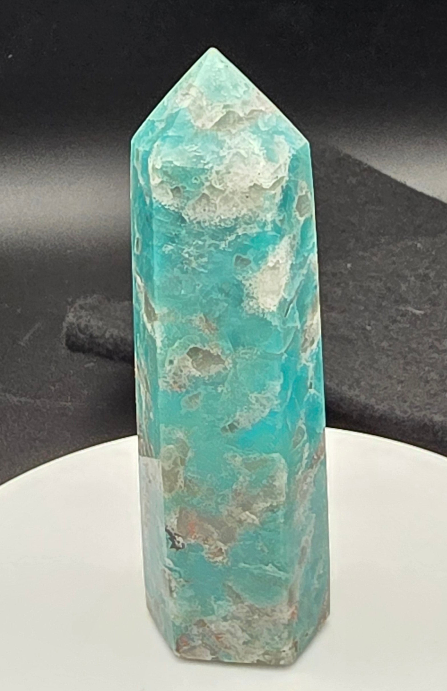 In summary, an Amazonite Tower is a beautiful and spiritually uplifting crystal that supports emotional healing, communication, intuition, and personal growth. It radiates a gentle yet powerful energy that benefits the entire being and promotes harmony and well-being.