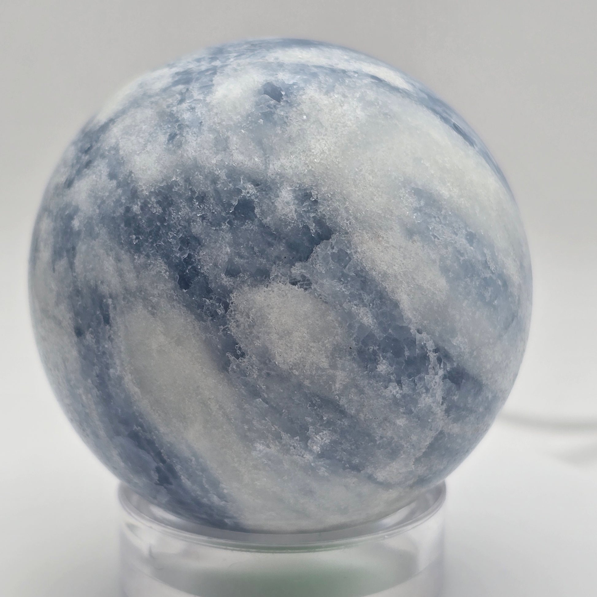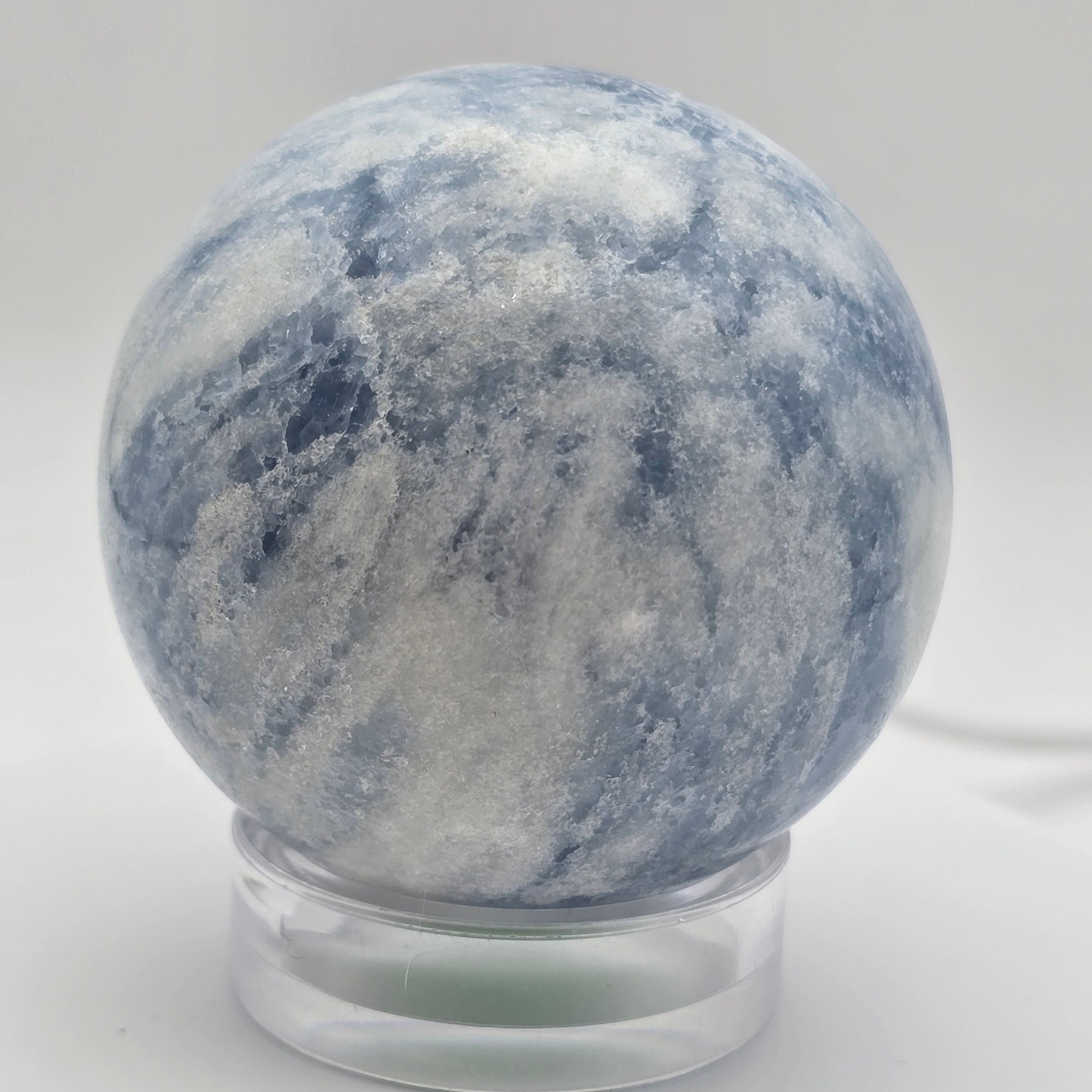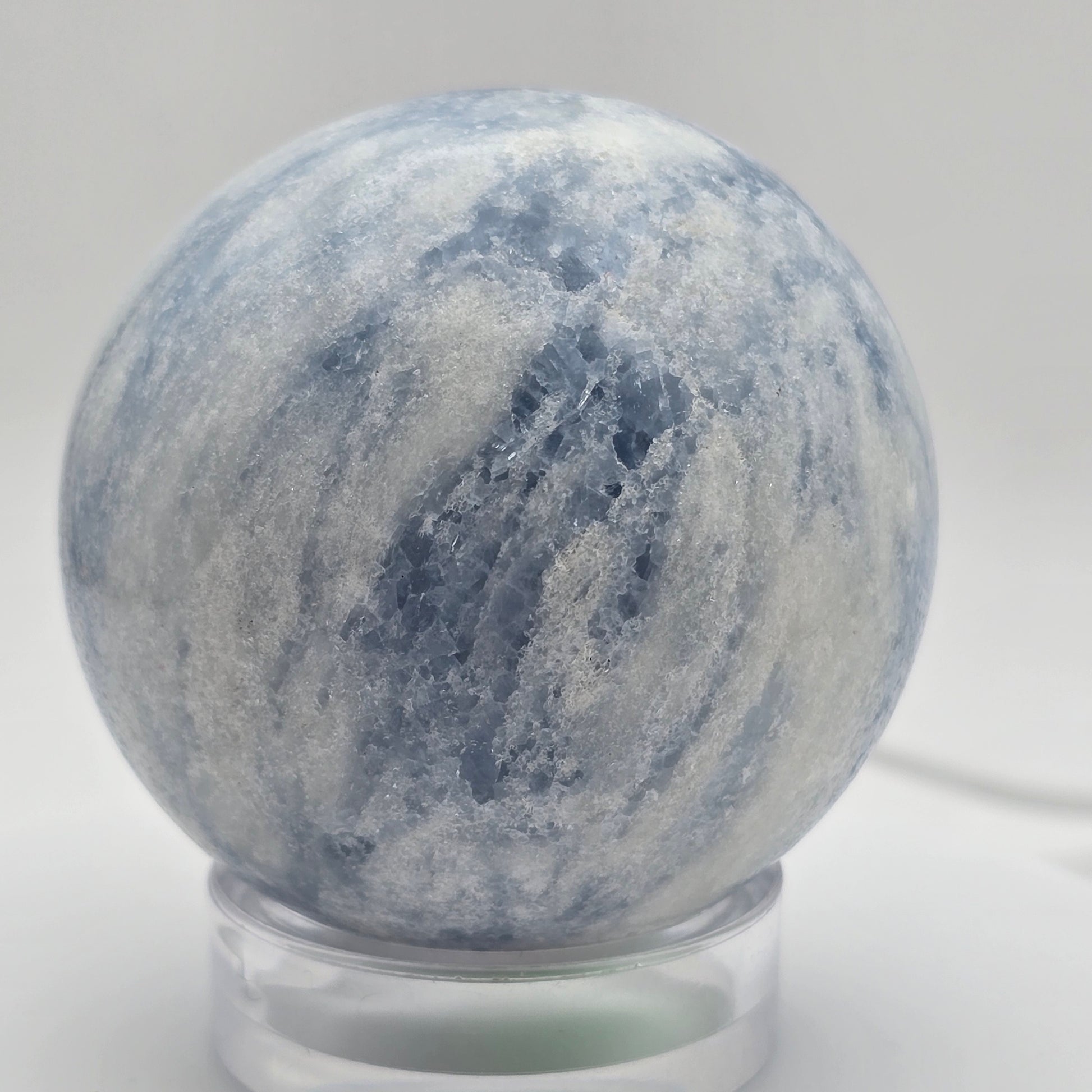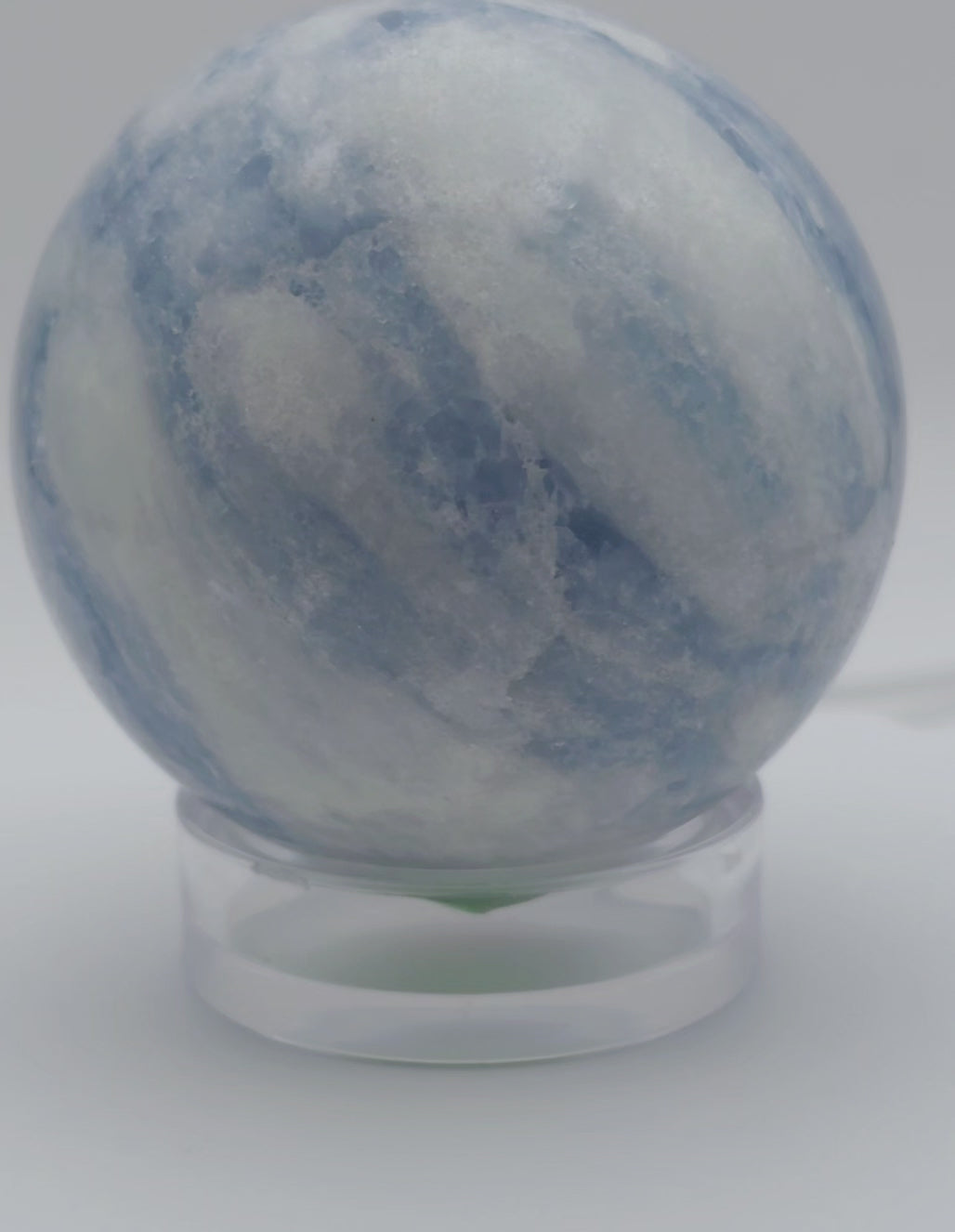 Whether displayed as a decorative accent in a home or office, used as a focal point for meditation, or simply admired for its natural beauty, the blue calcite sphere is a captivating and enchanting addition to any space, radiating tranquility and harmony wherever it is placed.
