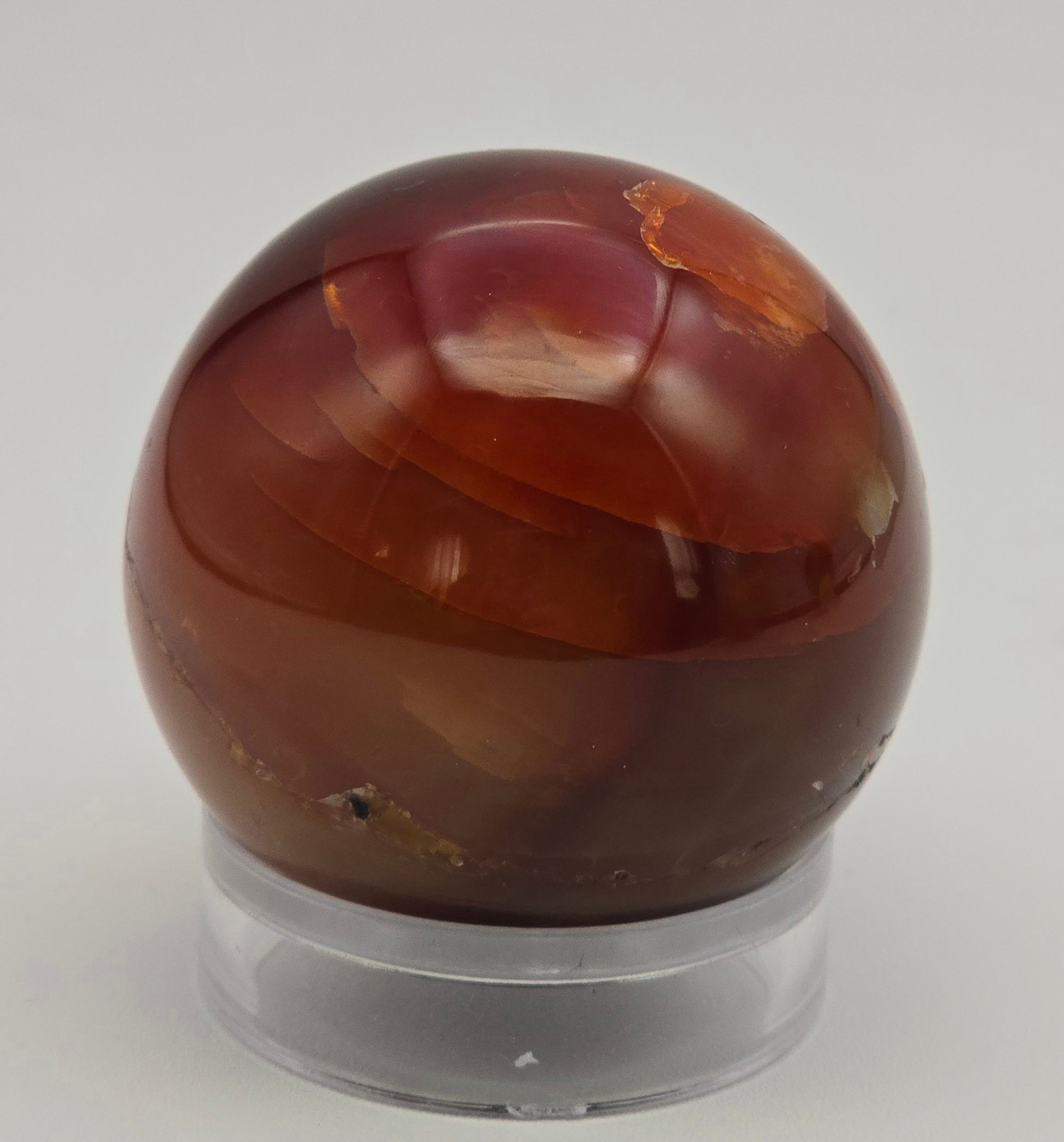Metaphysical Properties: In metaphysical beliefs, carnelian is associated with vitality, creativity, and passion. It is believed to stimulate the sacral chakra, promoting emotional balance, courage, and self-confidence. Carnelian spheres are commonly used in crystal healing practices to enhance motivation, creativity, and vitality. Healing and Balancing: Carnelian spheres are often used for crystal healing purposes to support physical, emotional, and spiritual well-being. They are believed to help boost energy levels, improve circulation, and alleviate feelings of lethargy or stagnation.
