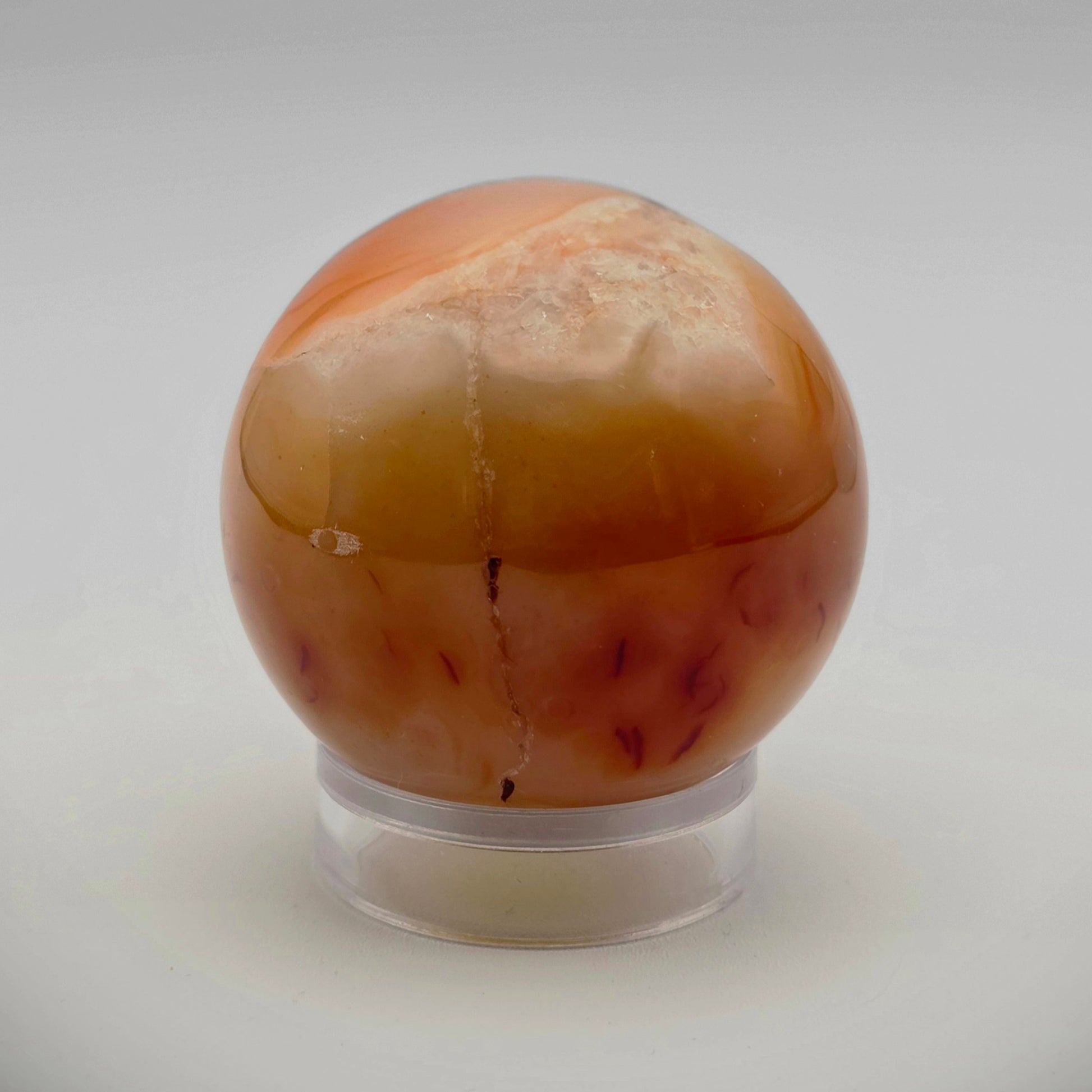 Metaphysical Properties: In metaphysical beliefs, carnelian is associated with vitality, creativity, and passion. It is believed to stimulate the sacral chakra, promoting emotional balance, courage, and self-confidence. Carnelian spheres are commonly used in crystal healing practices to enhance motivation, creativity, and vitality. Healing and Balancing: Carnelian spheres are often used for crystal healing purposes to support physical, emotional, and spiritual well-being. They are believed to help boost energy levels, improve circulation, and alleviate feelings of lethargy or stagnation.