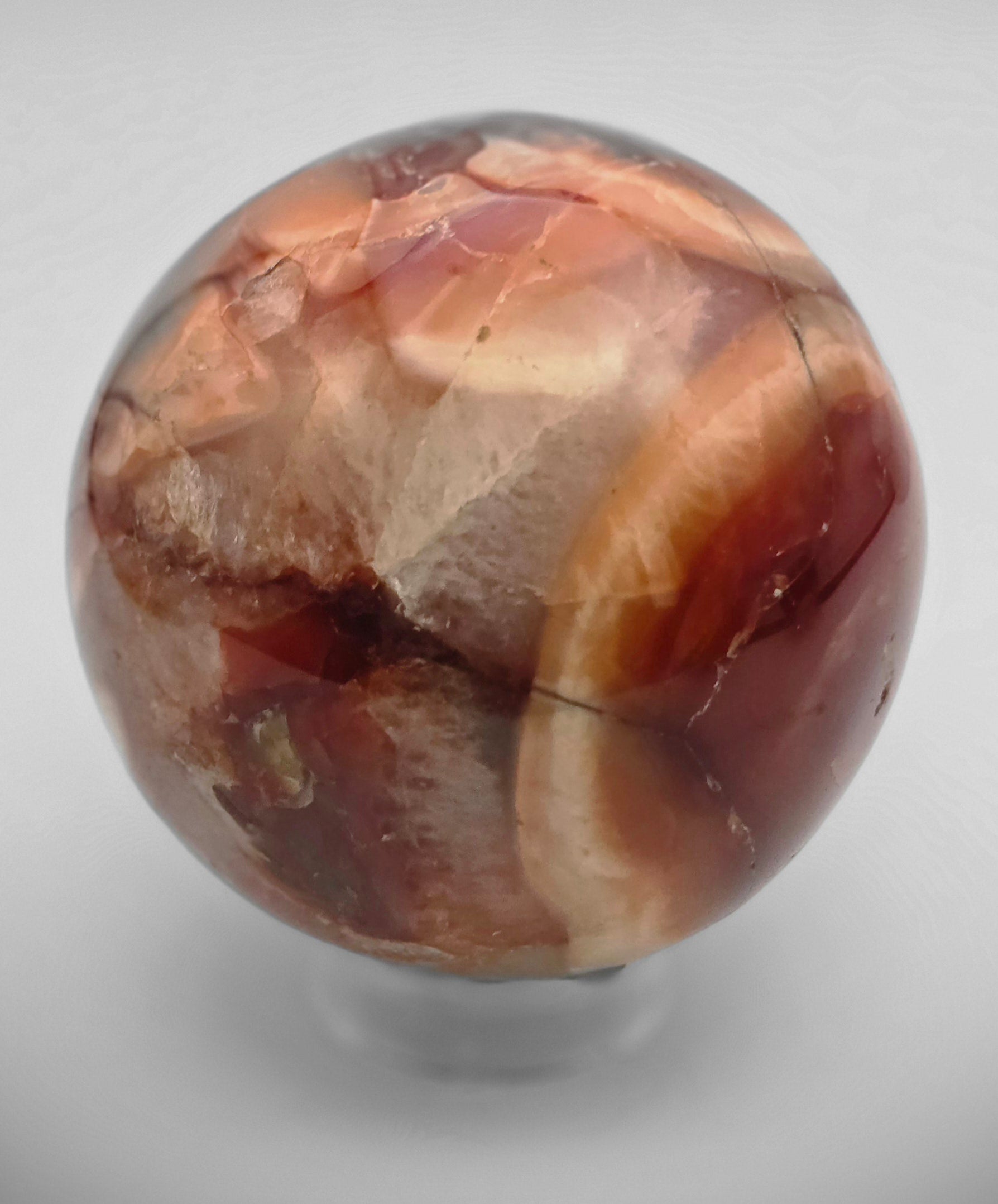 Metaphysical Properties: In metaphysical beliefs, carnelian is associated with vitality, creativity, and passion. It is believed to stimulate the sacral chakra, promoting emotional balance, courage, and self-confidence. Carnelian spheres are commonly used in crystal healing practices to enhance motivation, creativity, and vitality. Healing and Balancing: Carnelian spheres are often used for crystal healing purposes to support physical, emotional, and spiritual well-being. They are believed to help boost energy levels, improve circulation, and alleviate feelings of lethargy or stagnation.
