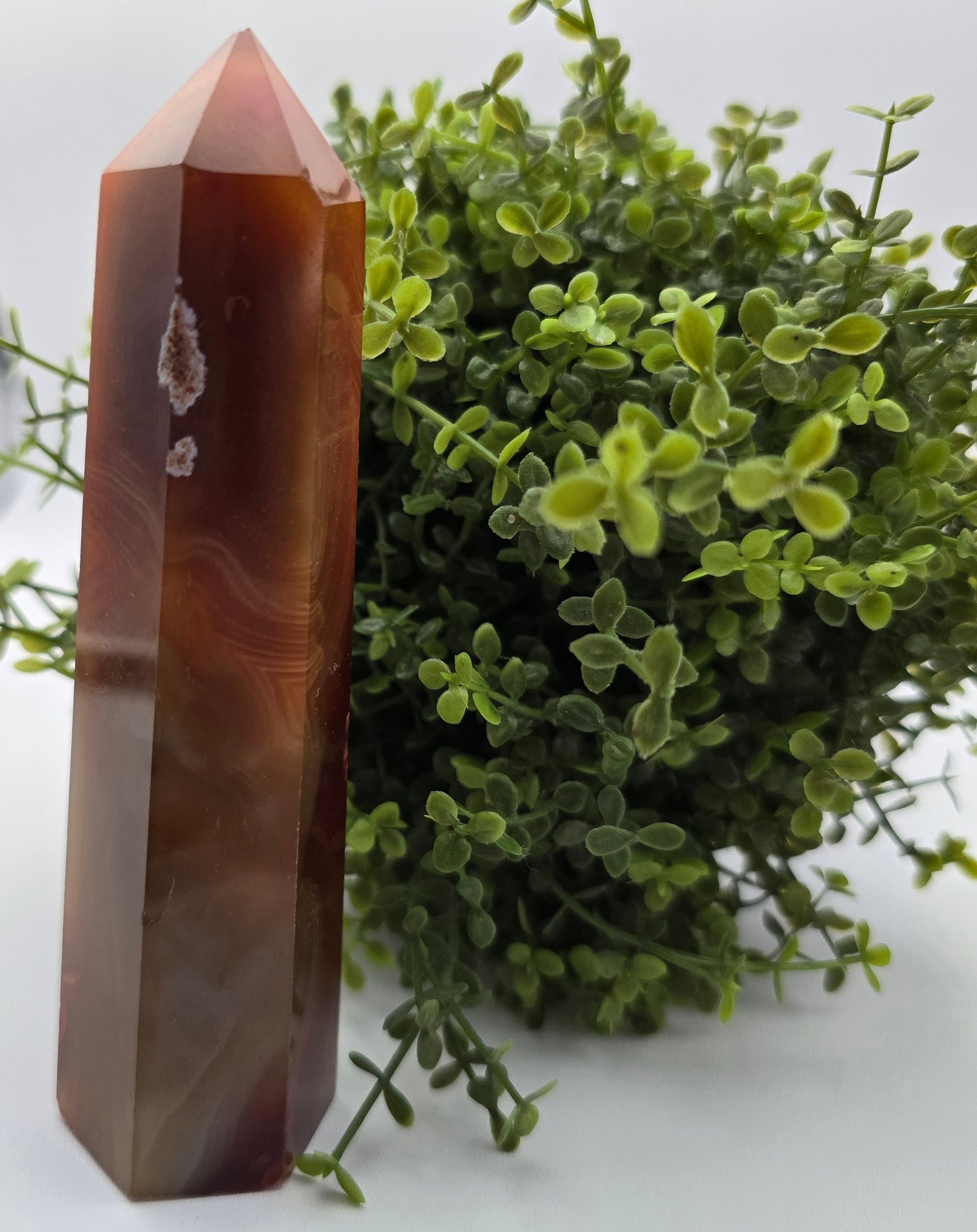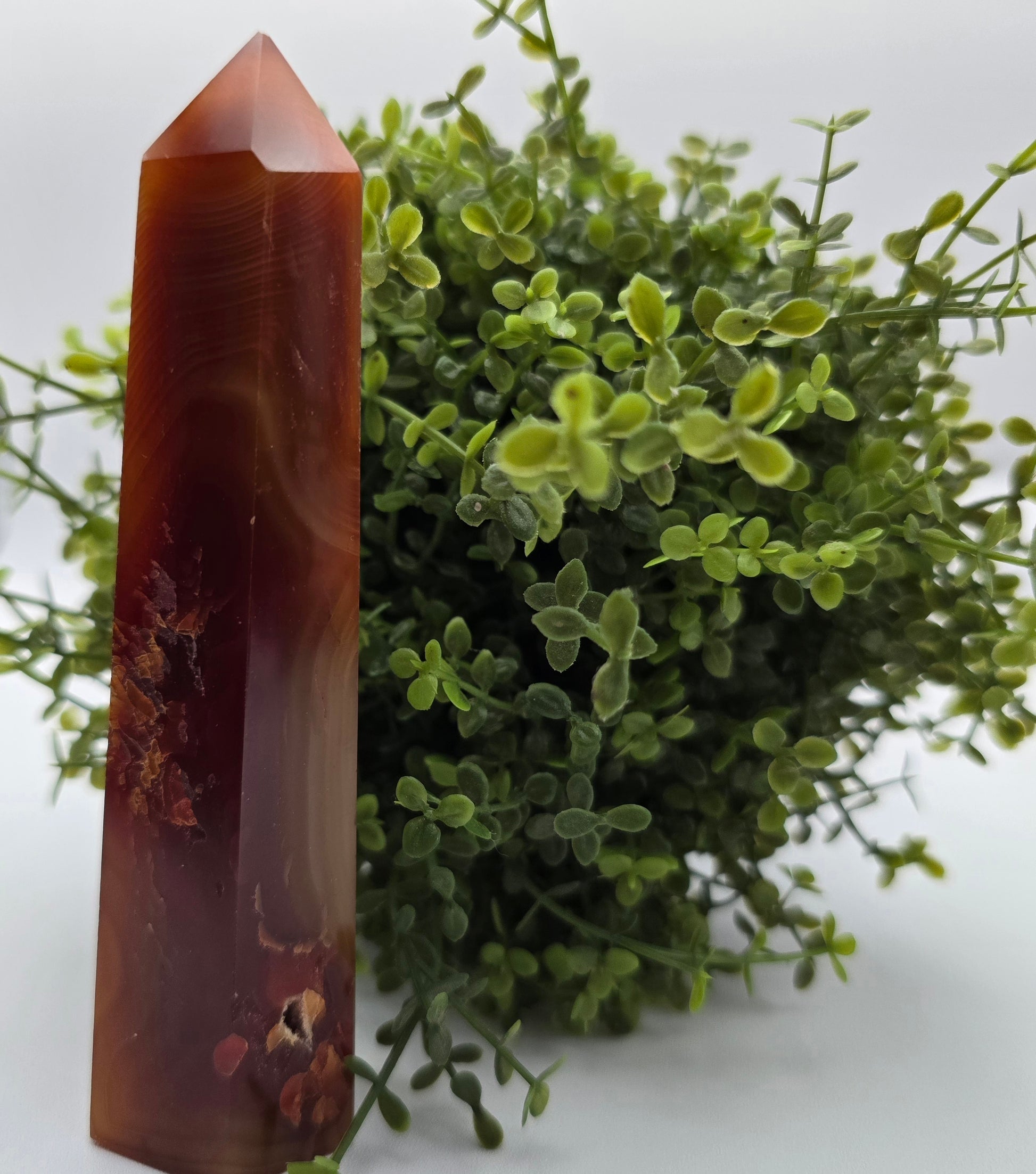 Creativity and Passion: Carnelian is known as the "Artist's Stone," as it is believed to stimulate creativity and ignite passion within the soul. By working with a Carnelian Tower, individuals can tap into their creative potential and express themselves with greater clarity and enthusiasm. Vitality and Energy: Carnelian is a stone of vitality and endurance, imbuing the wearer with a sense of strength and vitality. By incorporating a Carnelian Tower into your space, you can infuse your surroundings with energy and enthusiasm, helping you to tackle challenges with renewed vigor and determination. Courage and Confidence: Carnelian is associated with the sacral chakra, which governs emotions, creativity, and self-expression. By balancing this energy center, Carnelian promotes feelings of courage and confidence, empowering individuals to assert themselves and pursue their goals with conviction. Emotional Healing: Carnelian is thought to have a soothing effect on the emotions, helping to dispel feelings of anger, jealousy, and resentment. By meditating with a Carnelian Tower, individuals can release negative emotions and cultivate a greater sense of inner peace and tranquility. Manifestation and Abundance: Carnelian is believed to be a powerful stone for manifestation and attracting abundance. By setting intentions and working with a Carnelian Tower, individuals can align their energies with their goals and manifest their desires with greater ease and success.