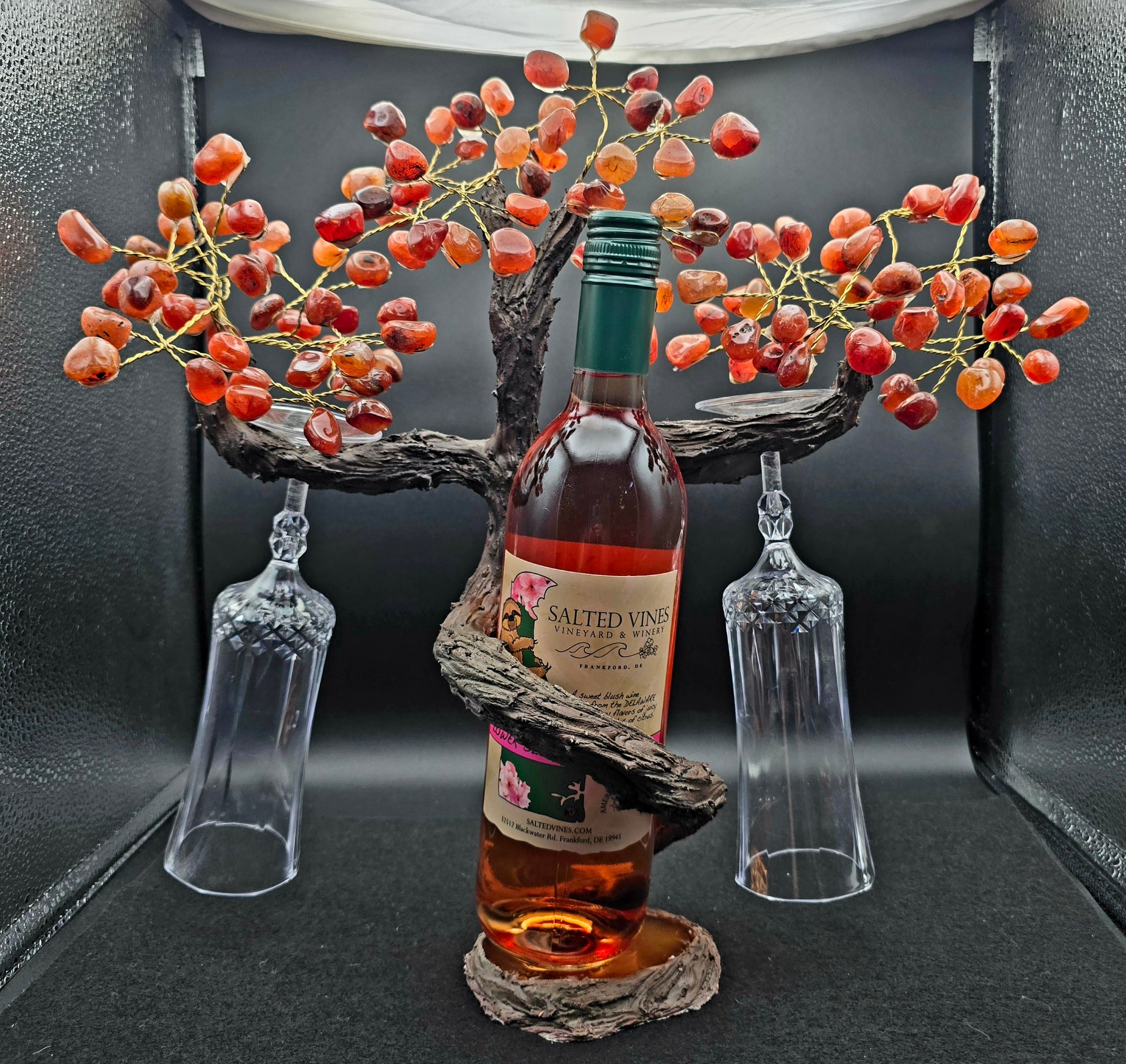 A Carnelian wine tree holder is a unique and stunning piece that combines the vibrant beauty of Carnelian gemstones with the functional elegance of a wine holder designed in the shape of a tree.