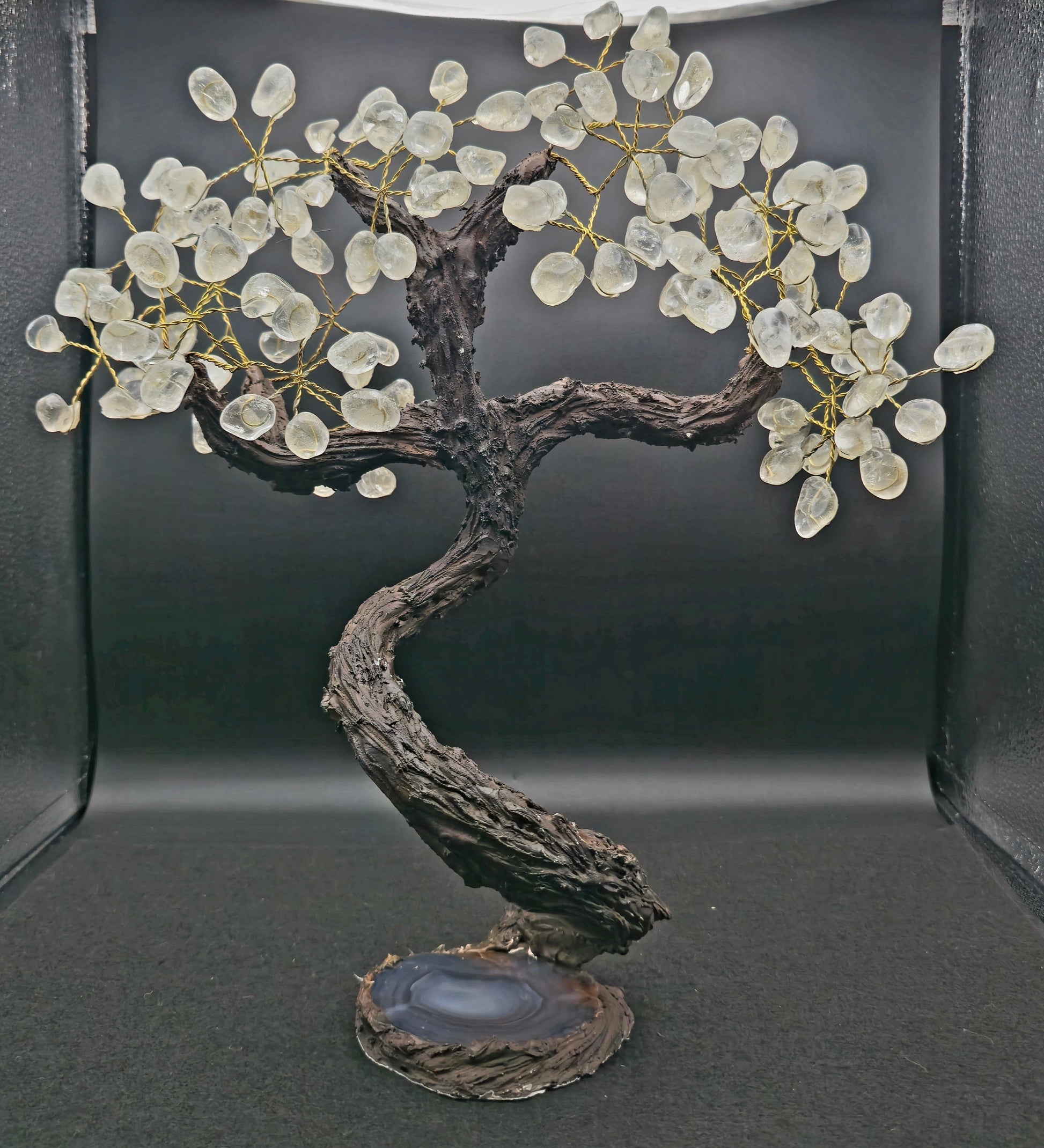 - Detailing: The branches and base of the tree are carefully crafted, with attention to details such as the texture of the bark (if wood) or the smooth curves of metal branches. The placement of the Carnelian stones is strategic, ensuring both visual appeal and balance.