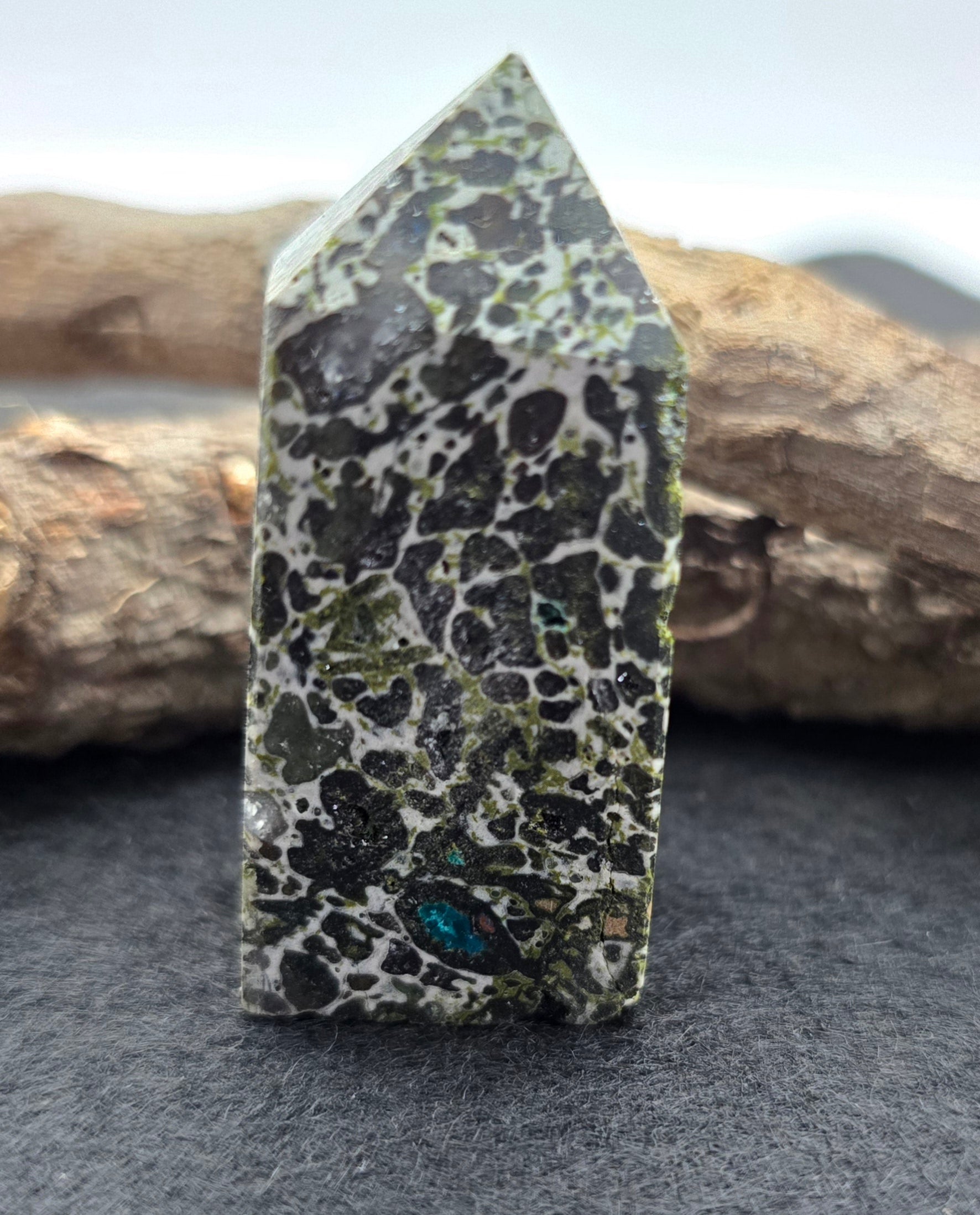 Overall, the Chrysocolla and Copper tower is not only a stunning decorative piece but also a powerful tool for personal growth, healing, and spiritual evolution. Its unique blend of energies and metaphysical properties make it a valuable addition to any collection or sacred space.