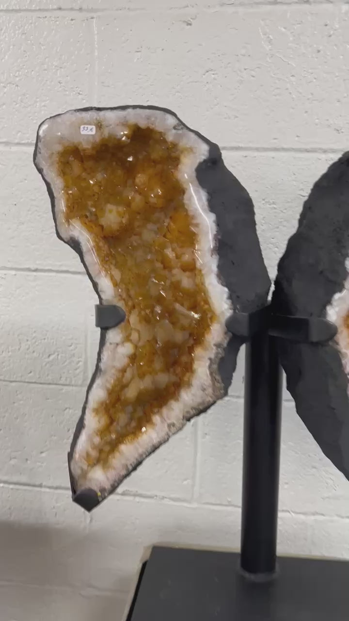 - Display: Place the wings on their stand in a location where they are protected from direct sunlight and extreme temperatures, as these can affect the color and integrity of the citrine.