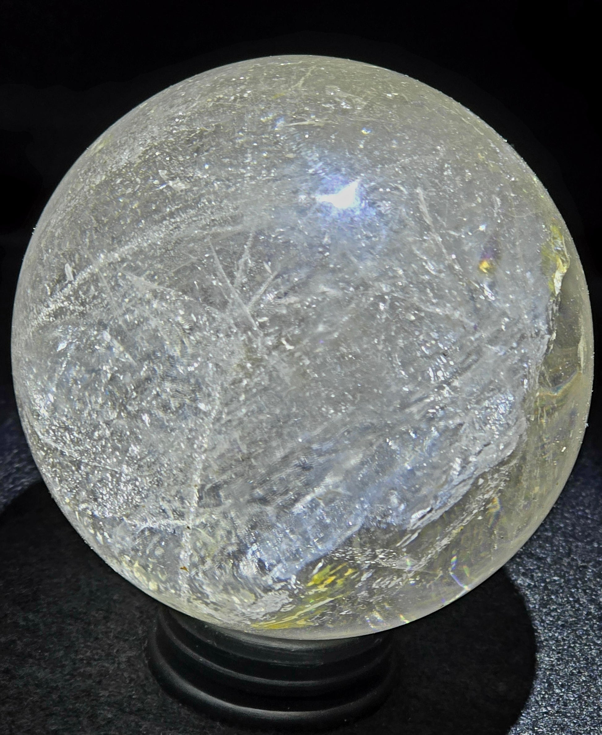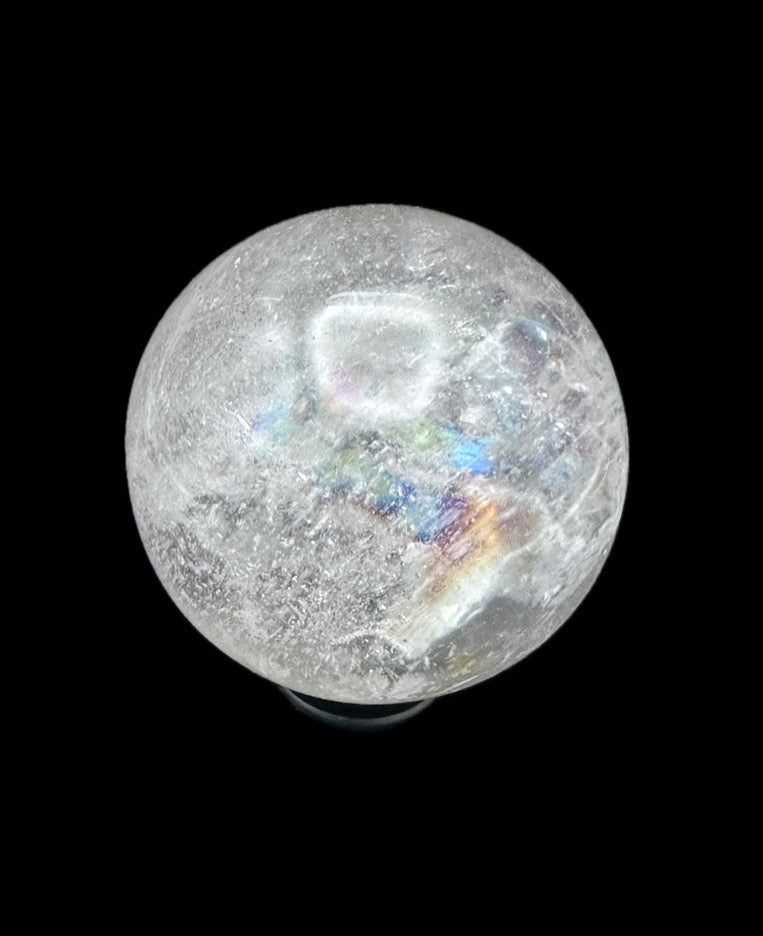 Texture: The surface of the sphere is smooth and polished, providing a tactile sensation that is both pleasing to the touch and visually appealing. The polished surface accentuates the natural beauty of the clear quartz crystal and enhances its reflective properties.
