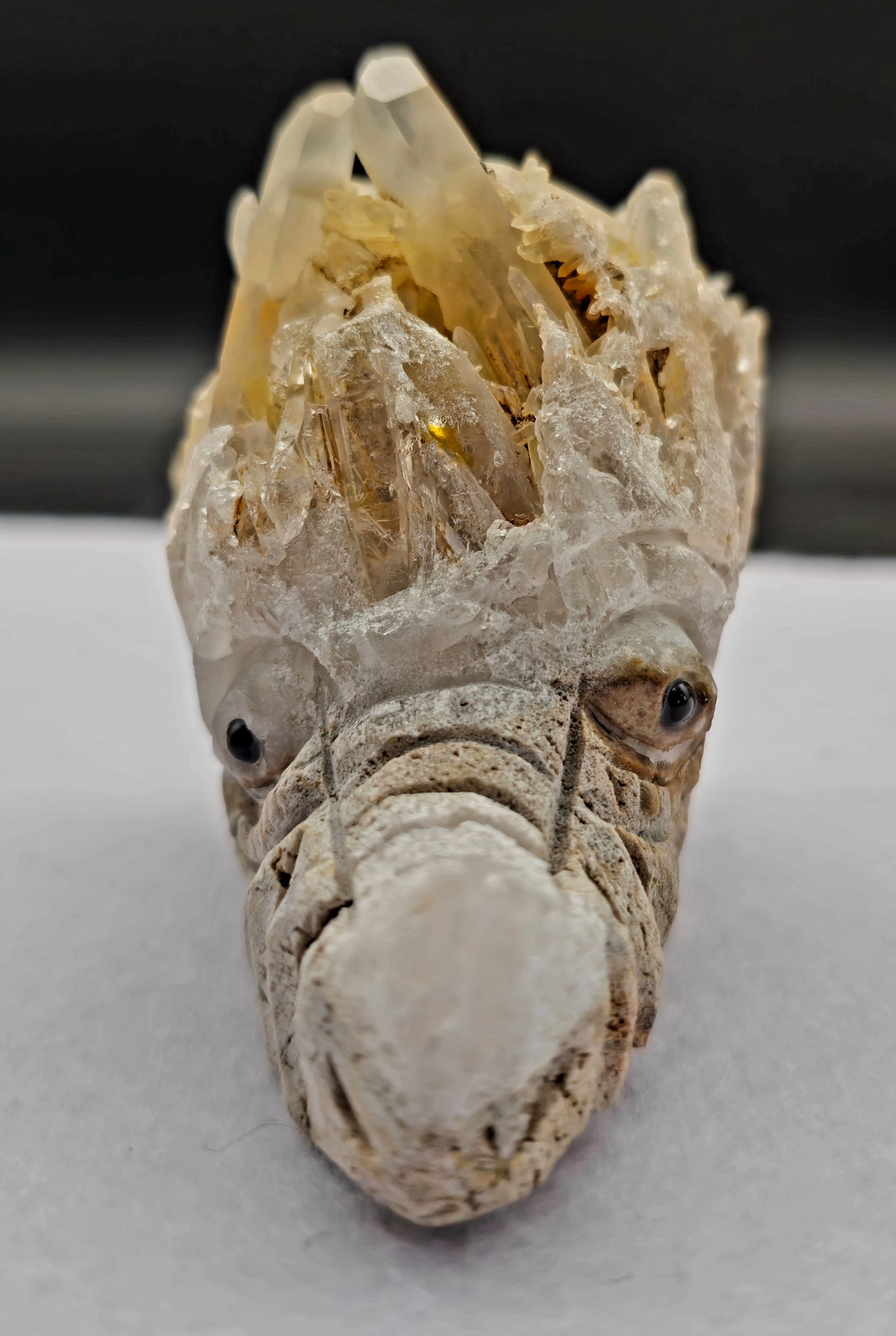 A quartz point dragon head is a unique and enchanting piece of art or crystal sculpture that combines the natural beauty of quartz with the mystical and powerful imagery of a dragon. A quartz point dragon head is not just a piece of crystal; it’s a blend of natural beauty and mythical artistry, making it a prized possession for both its aesthetic appeal and its spiritual significance.