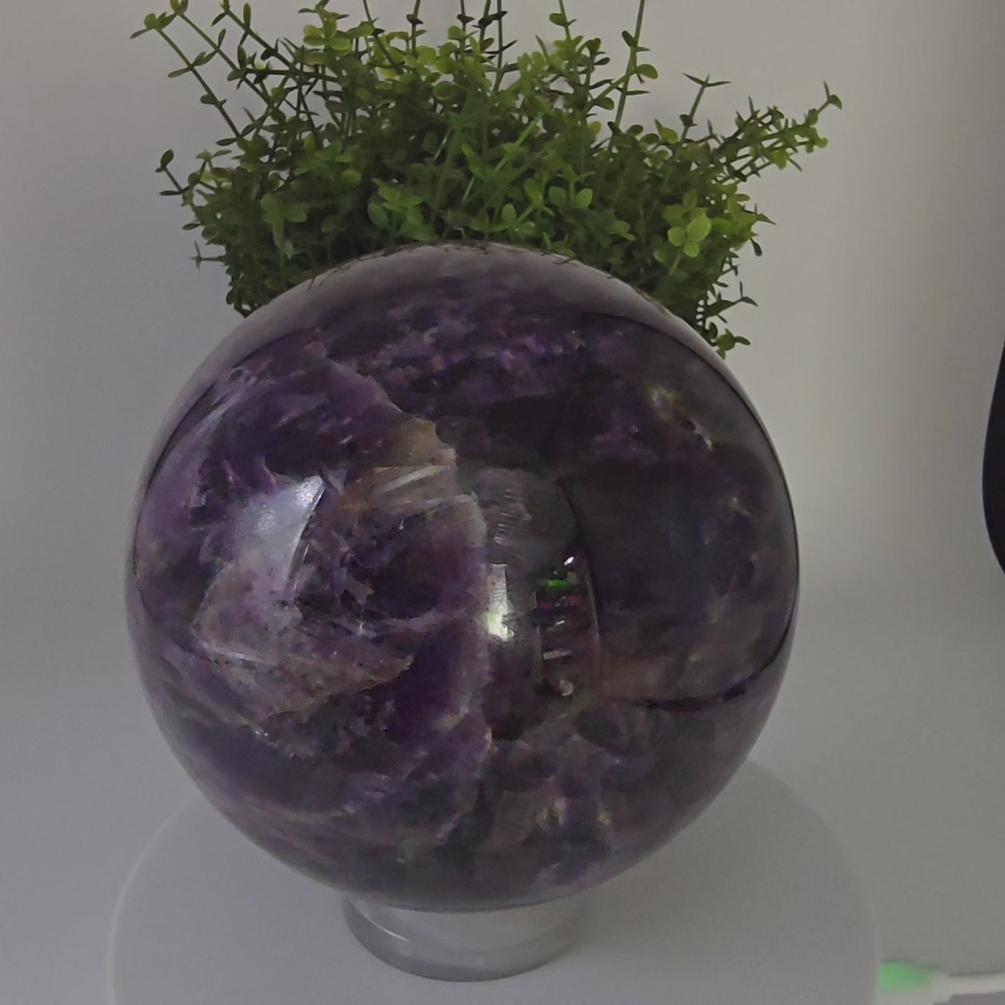 The Dream Amethyst sphere is not only a strikingly beautiful object but also a powerful tool for enhancing spiritual growth, emotional healing, and mental clarity.