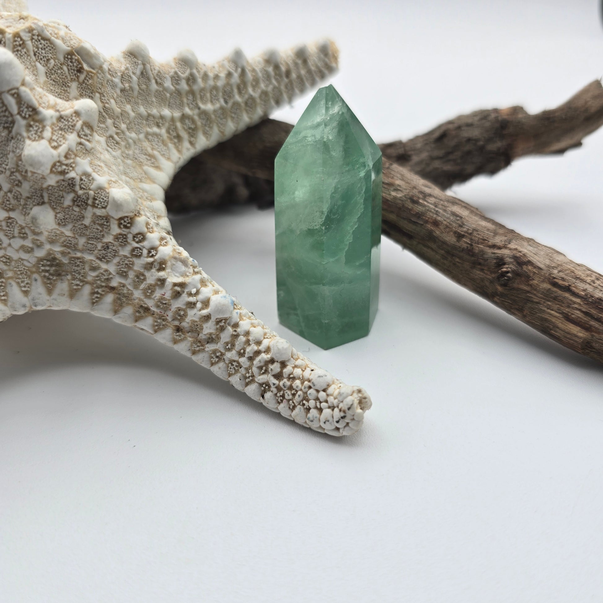 Heart Chakra Activation: Green Fluorite is deeply connected to the Heart Chakra, making it an excellent stone for emotional healing, compassion, and self-love. By working with the Green Fluorite Tower, individuals can open and balance the Heart Chakra, allowing love and positive energy to flow freely. Emotional Healing: The soothing energy of Green Fluorite can alleviate stress, anxiety, and emotional turmoil, promoting a sense of calmness and tranquility within the individual. By working with the Green Fluorite Tower, individuals can release negative emotions and cultivate greater emotional resilience and well-being. Clarity and Focus: Green Fluorite is believed to enhance mental clarity, concentration, and focus. By working with the Green Fluorite Tower, individuals can clear mental fog, overcome indecision, and sharpen their cognitive abilities, leading to improved decision-making and problem-solving skills. Spiritual Growth: Green Fluorite facilitates spiritual growth and expansion by enhancing intuition, psychic awareness, and spiritual insight. By meditating with the Green Fluorite Tower or placing it in sacred spaces, individuals can deepen their connection to higher consciousness and gain valuable insights into their spiritual path. Physical Healing: Green Fluorite is associated with physical healing and vitality, supporting the body's natural healing processes and promoting overall wellness. By working with the Green Fluorite Tower, individuals can enhance their physical vitality and energy levels, leading to improved health and well-being.