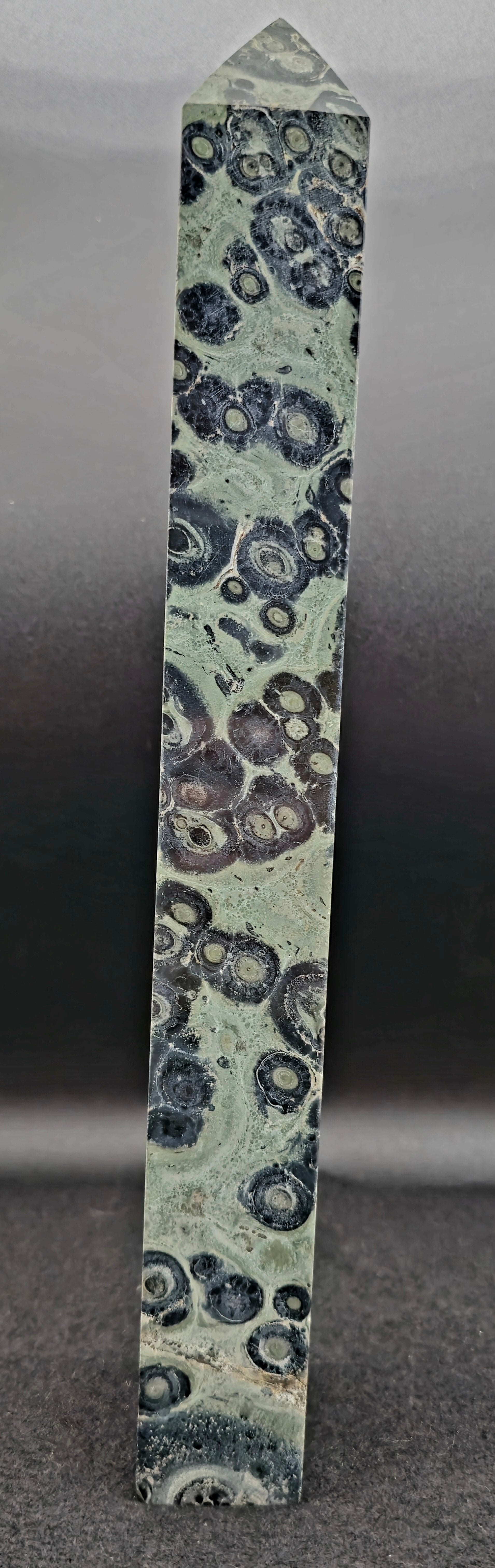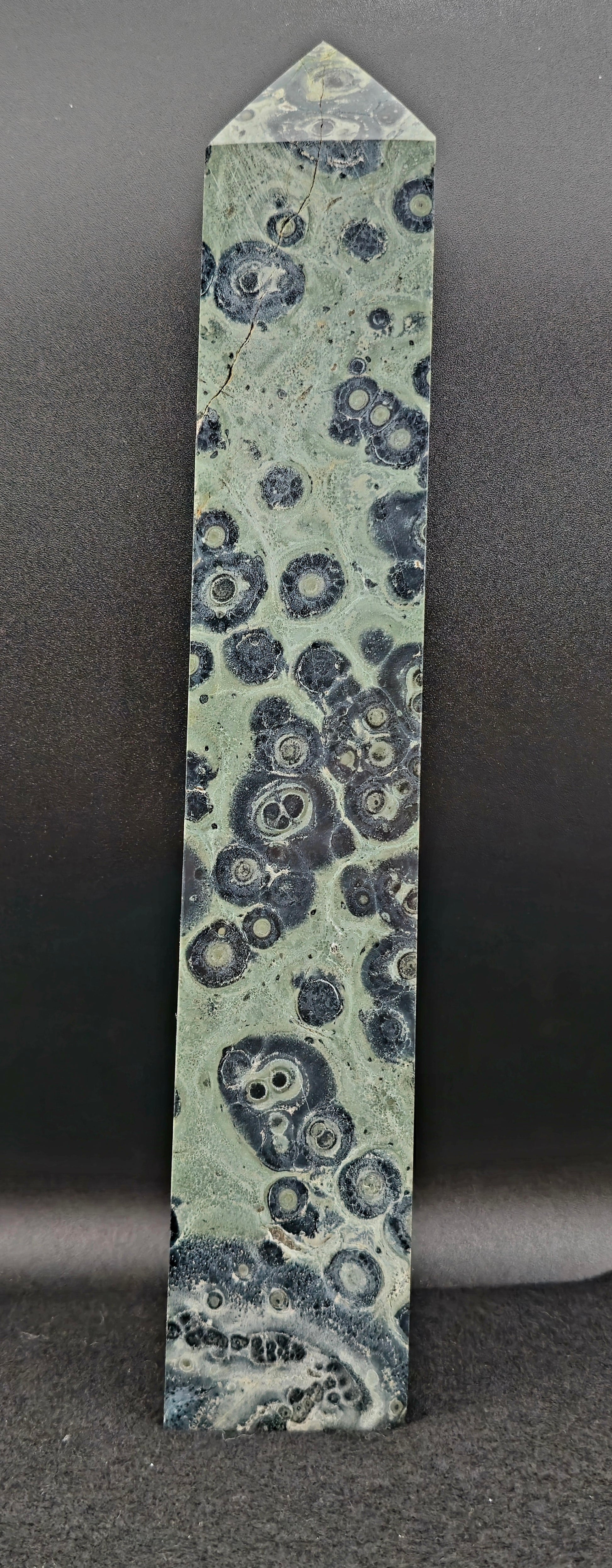 Kambaba Jasper towers are stunning natural formations crafted from Kambaba Jasper, a unique and visually striking variety of orbicular jasper. Kambaba Jasper towers are exquisite natural creations that showcase the beauty and complexity of the natural world. Their unique patterns, colors, and symbolism make them cherished and sought-after additions to any collection or space.