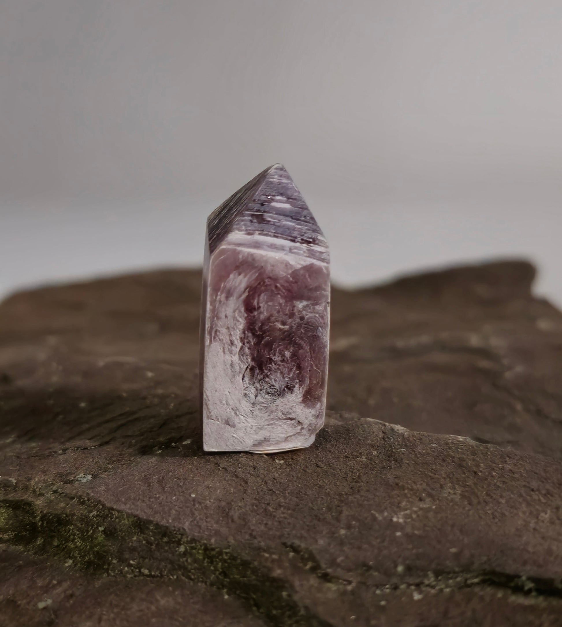 The Lepidolite Tower is an elegant crystal formation made from the soothing Lepidolite stone. Known for its delicate hues of purple, pink, and lilac, this polished tower is not only a stunning decorative piece but also a powerful ally for emotional balance and personal growth.