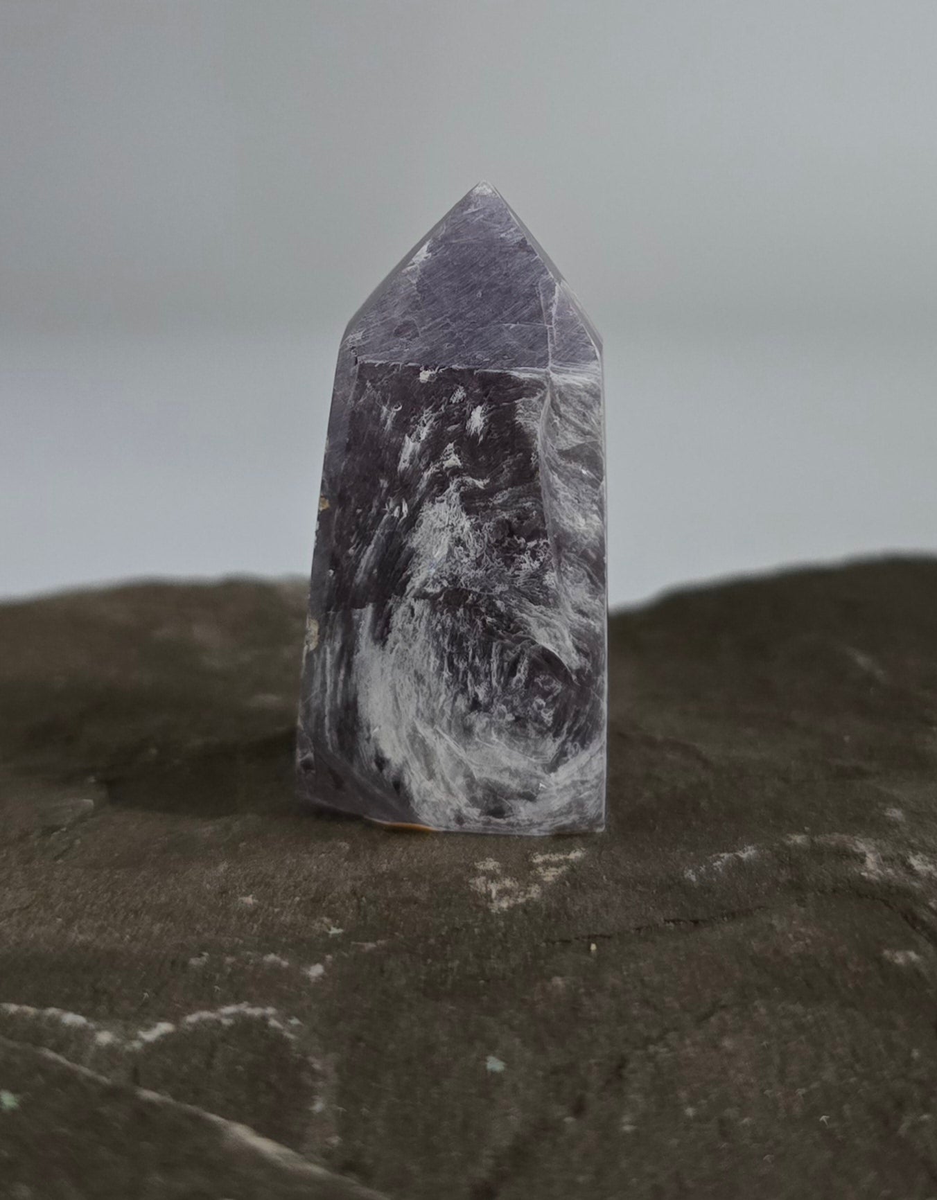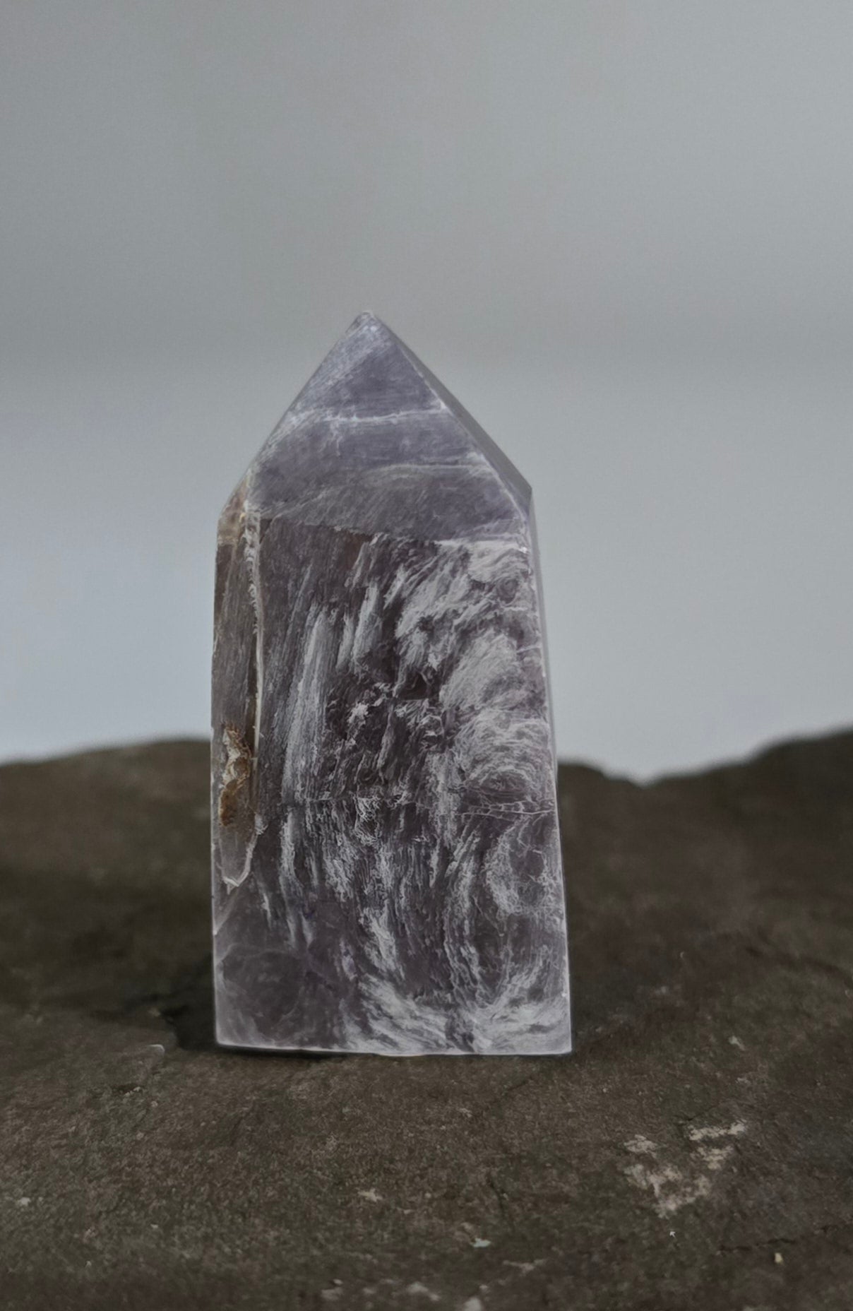 The Lepidolite Tower is an elegant crystal formation made from the soothing Lepidolite stone. Known for its delicate hues of purple, pink, and lilac, this polished tower is not only a stunning decorative piece but also a powerful ally for emotional balance and personal growth.