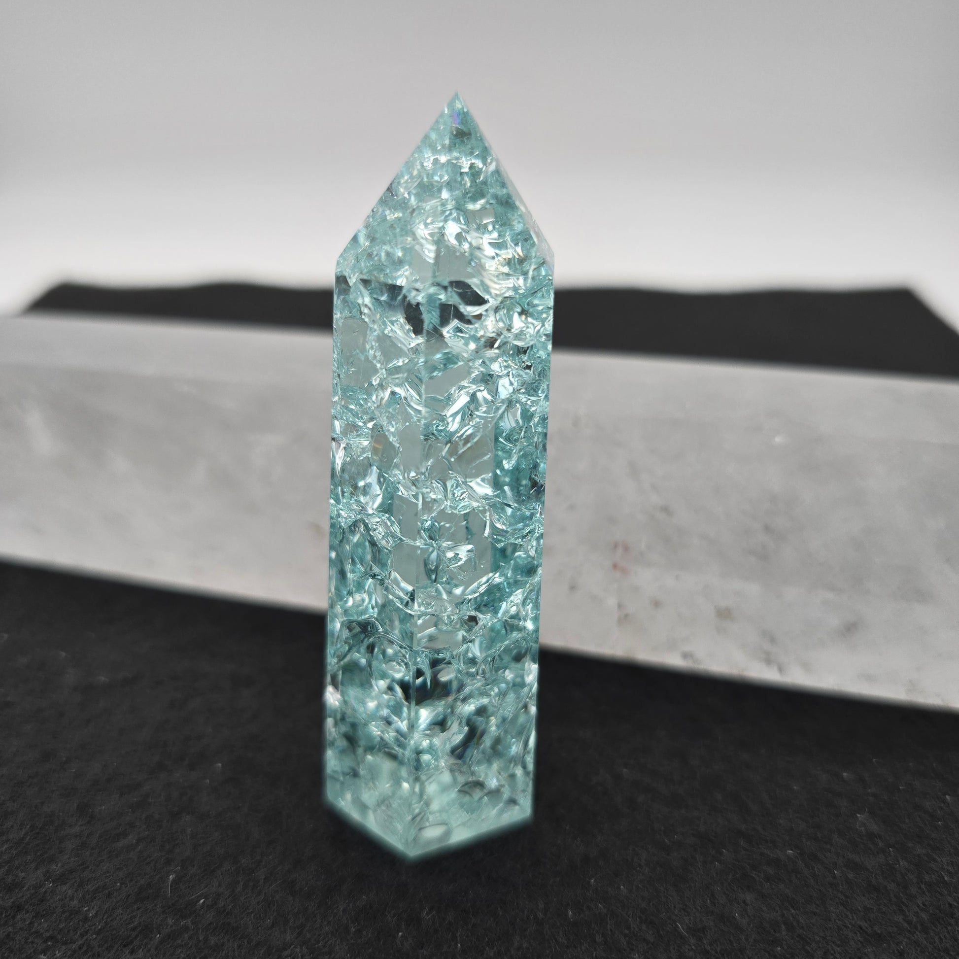 Light Blue Crackle Quartz Tower 3.7"-#3