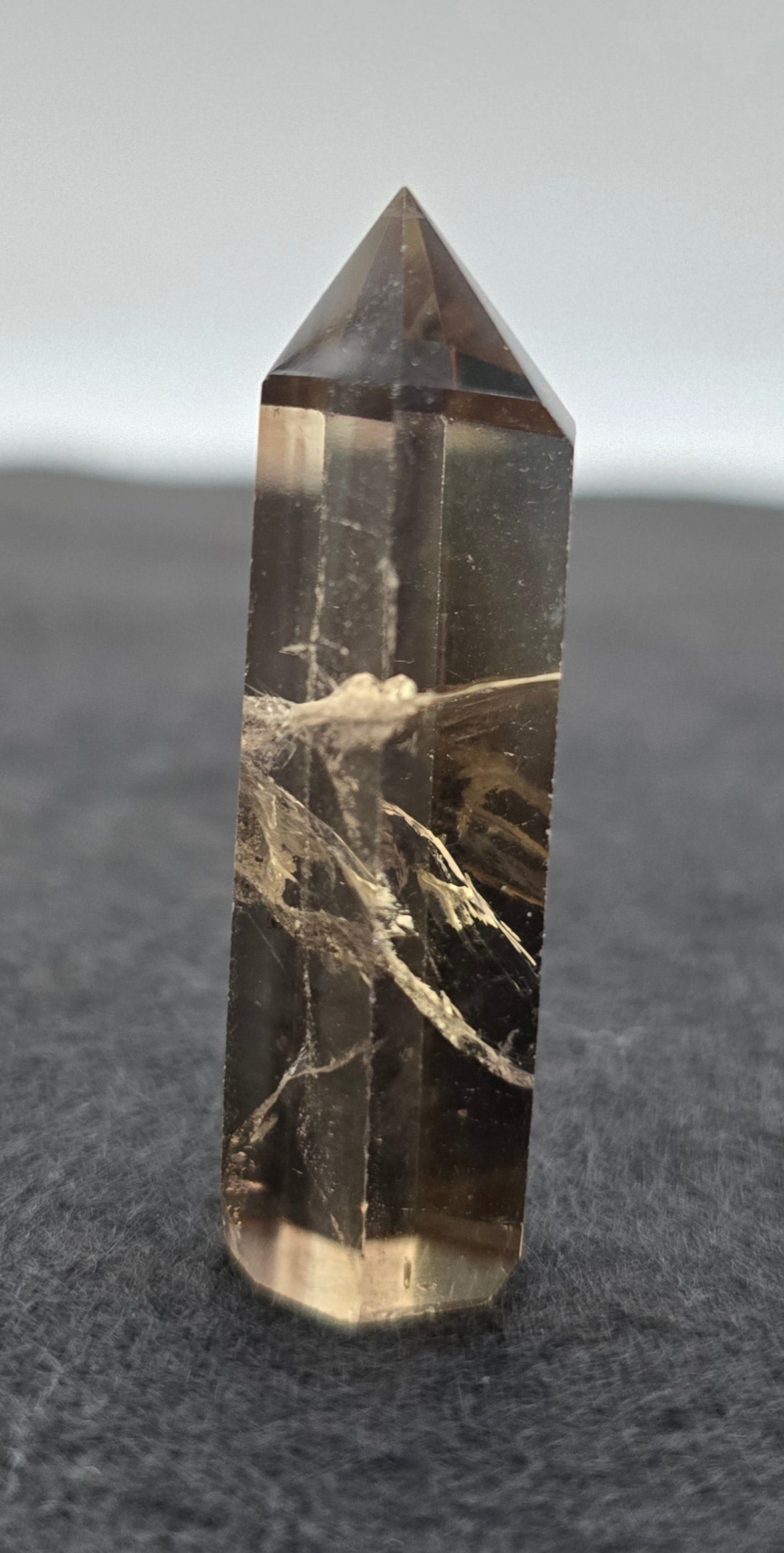 The Natural Citrine Tower stands tall and proud, exuding a golden glow that radiates light and energy. Its transparent crystalline form sparkles with hues of golden yellow and amber, reminiscent of the sun's radiant rays. Within its depths, subtle inclusions and striations add depth and character to the stone, creating a mesmerizing display of color and texture.
