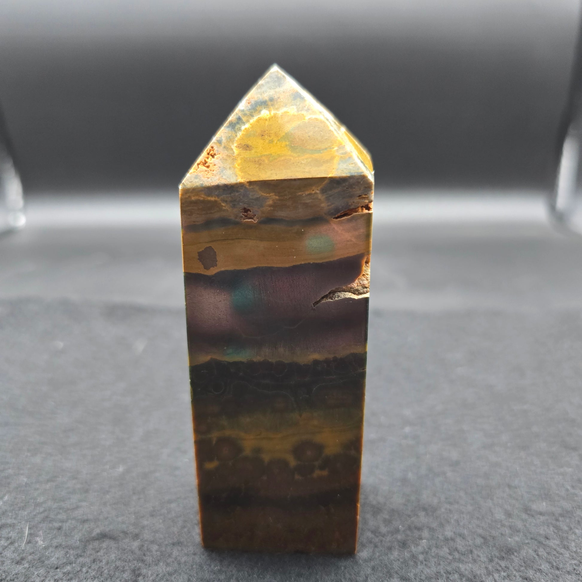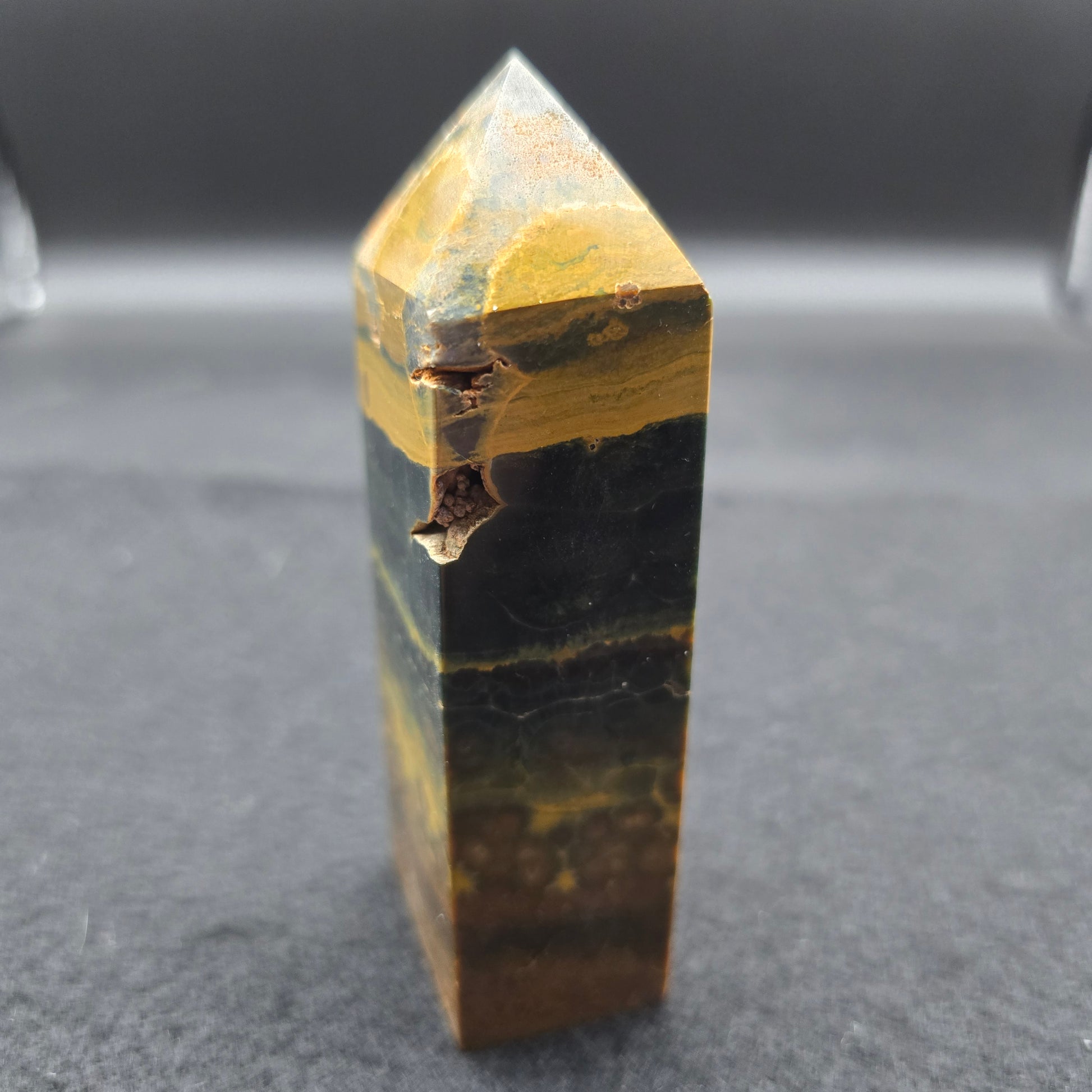- Aesthetic Appeal: The intricate patterns and colors of an Ocean Jasper tower add a unique and beautiful aesthetic to any space, making it a visually appealing addition to home or office decor.