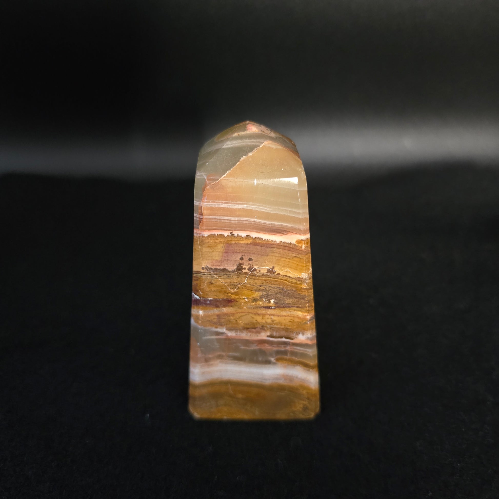 An Onyx tower is a polished, pointed piece of Onyx shaped into a tower or obelisk form. Towers are used in energy healing and metaphysical practices to direct and amplify energy.