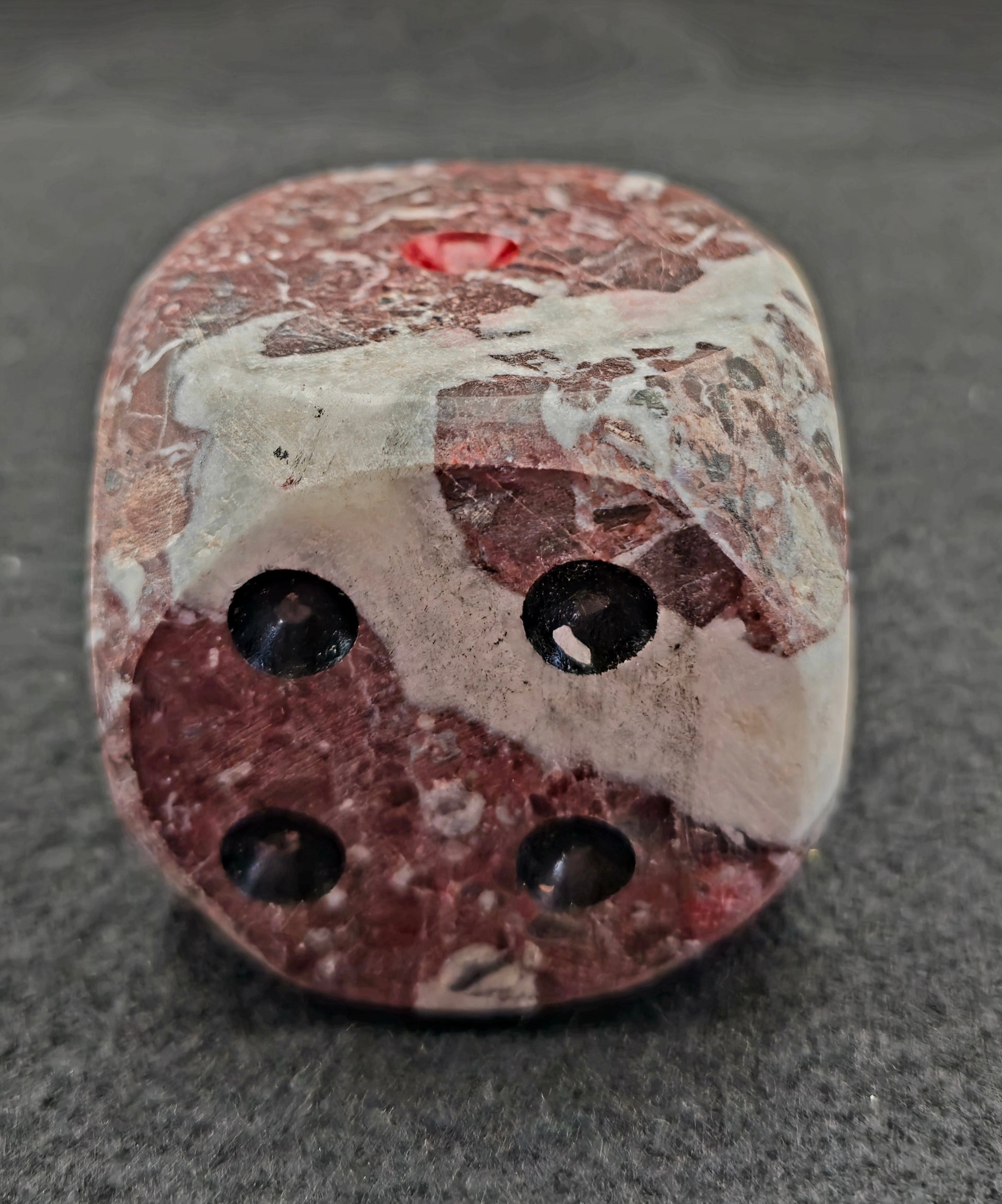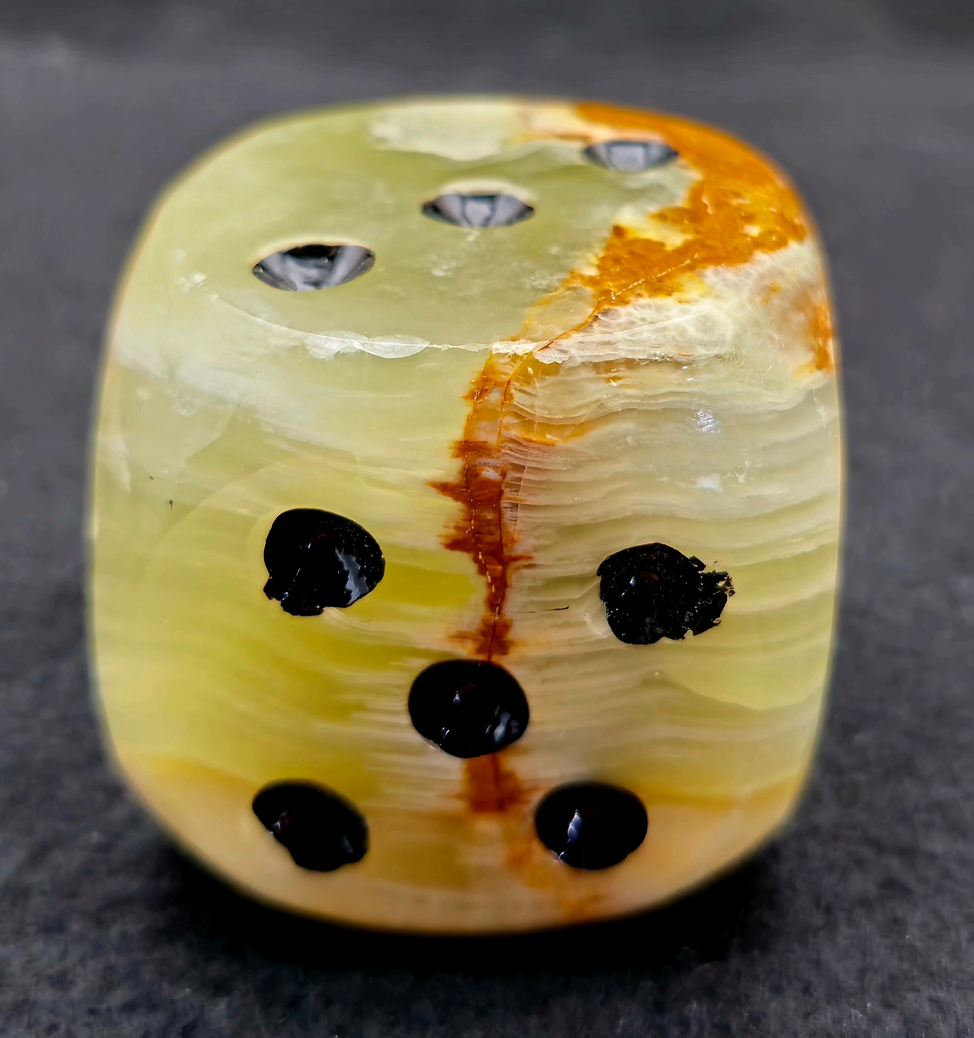 Material: The dice are made from onyx, a type of chalcedony mineral renowned for its color and veining. The natural patterns and variations in the stone ensure that each die is unique.