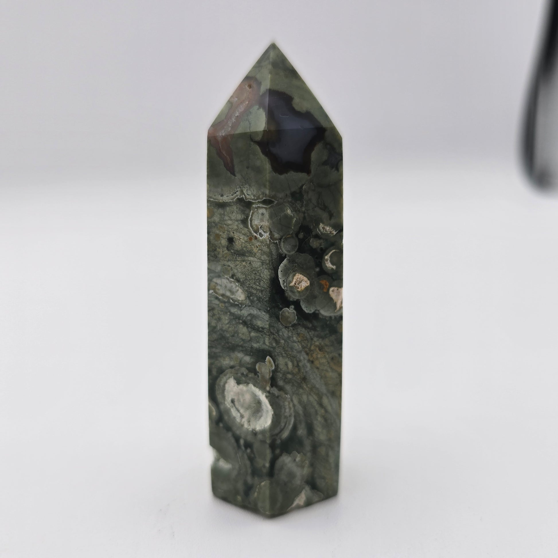 Introducing the Rainforest Jasper Tower - a stunning addition to any crystal collection. This tower is crafted from Rainforest Jasper, a unique stone known for its grounding and calming properties. Experience inner peace and balance in your everyday life with this beautiful tower.