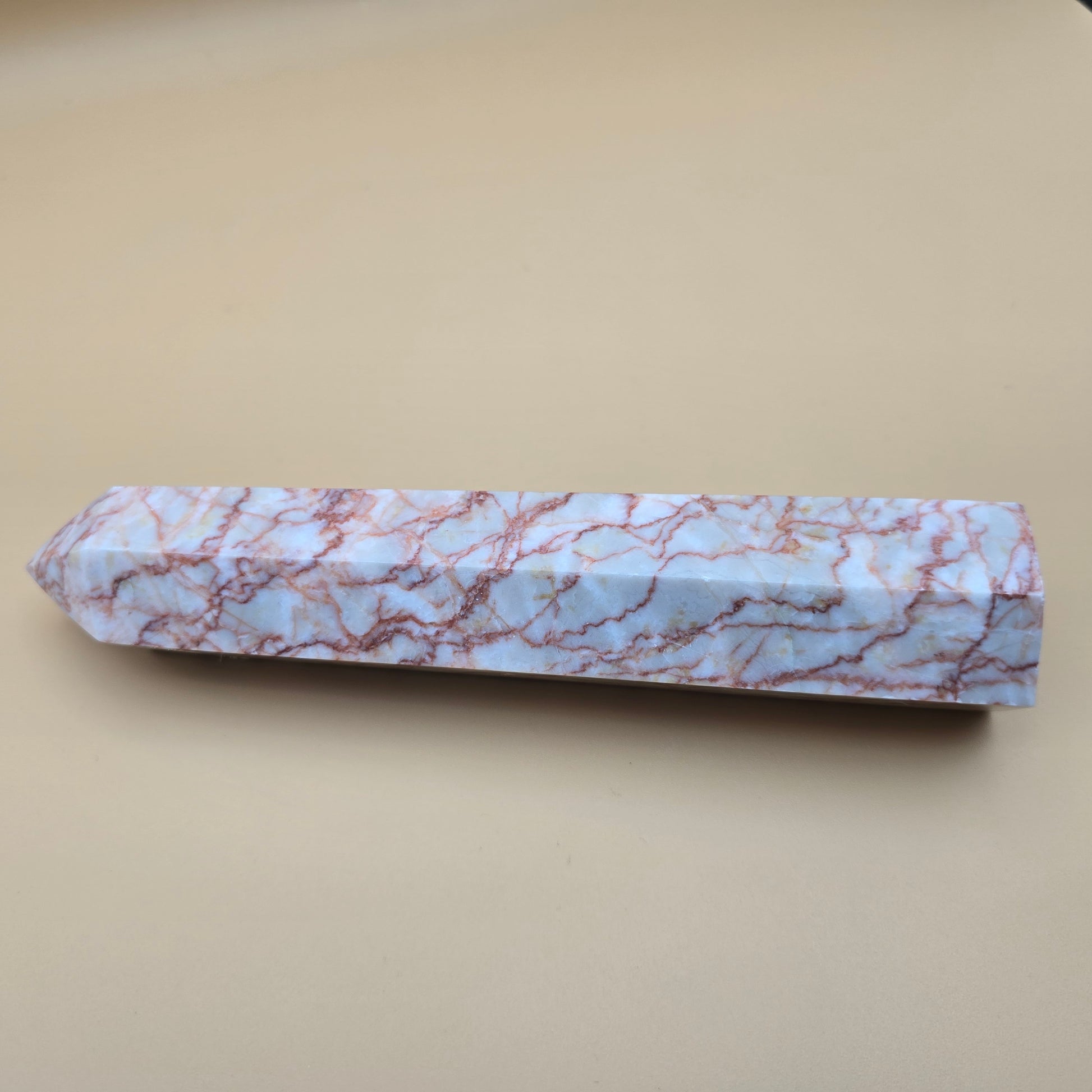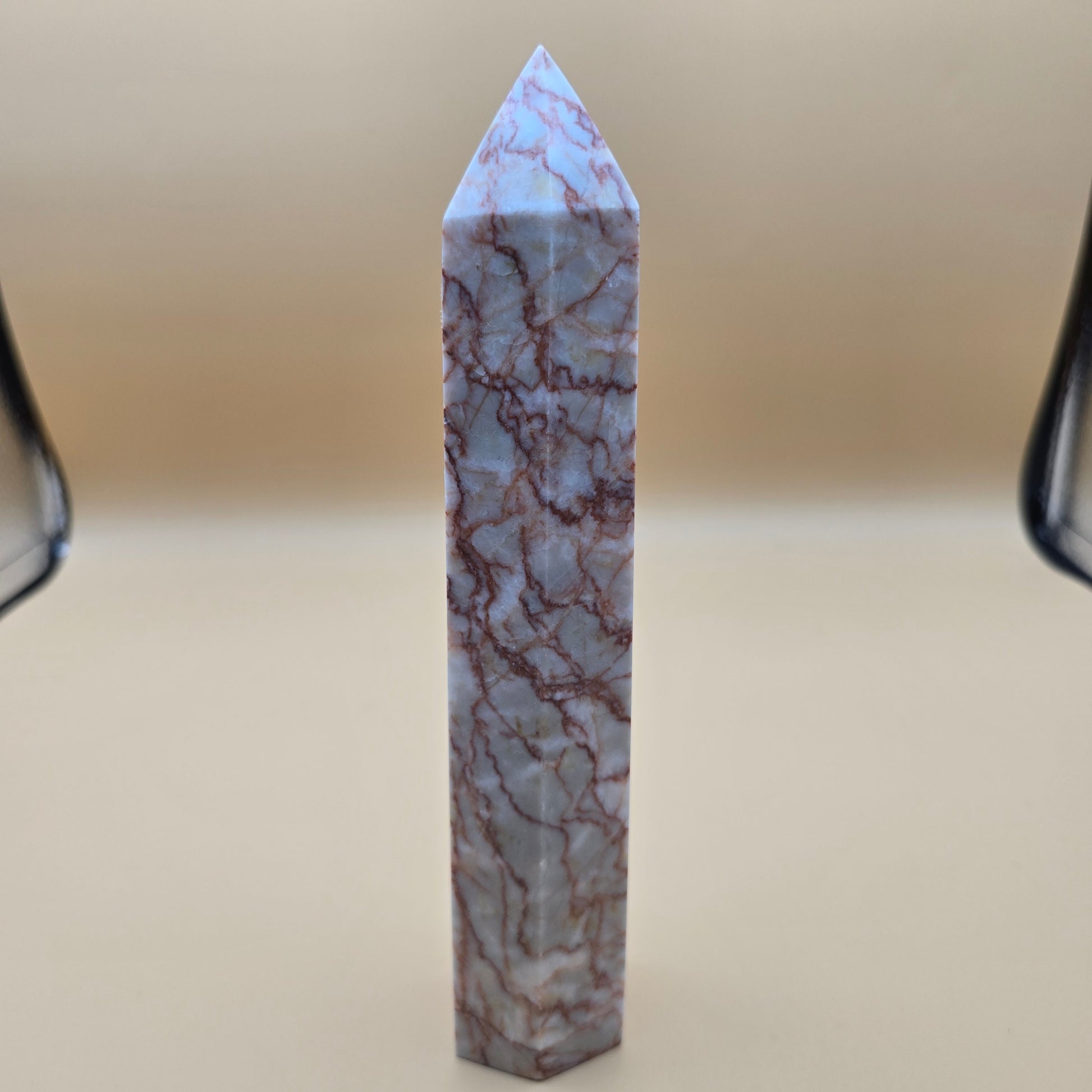 Experience the grounding energy of our Red Vein Jasper Tower. This beautiful stone is believed to provide stability and strength, making it the perfect addition to your crystal collection. With its rich, vibrant colors and unique patterns, this tower will not only enhance your home decor but also bring balance and harmony to your life.
