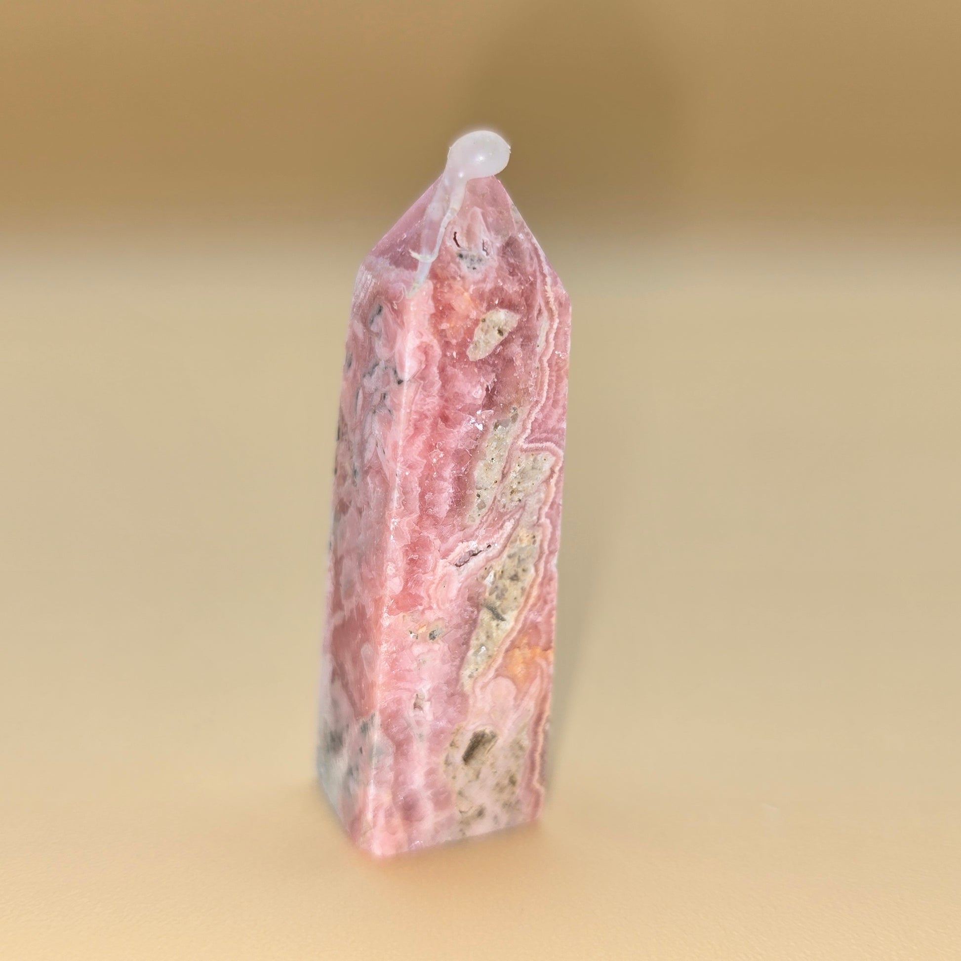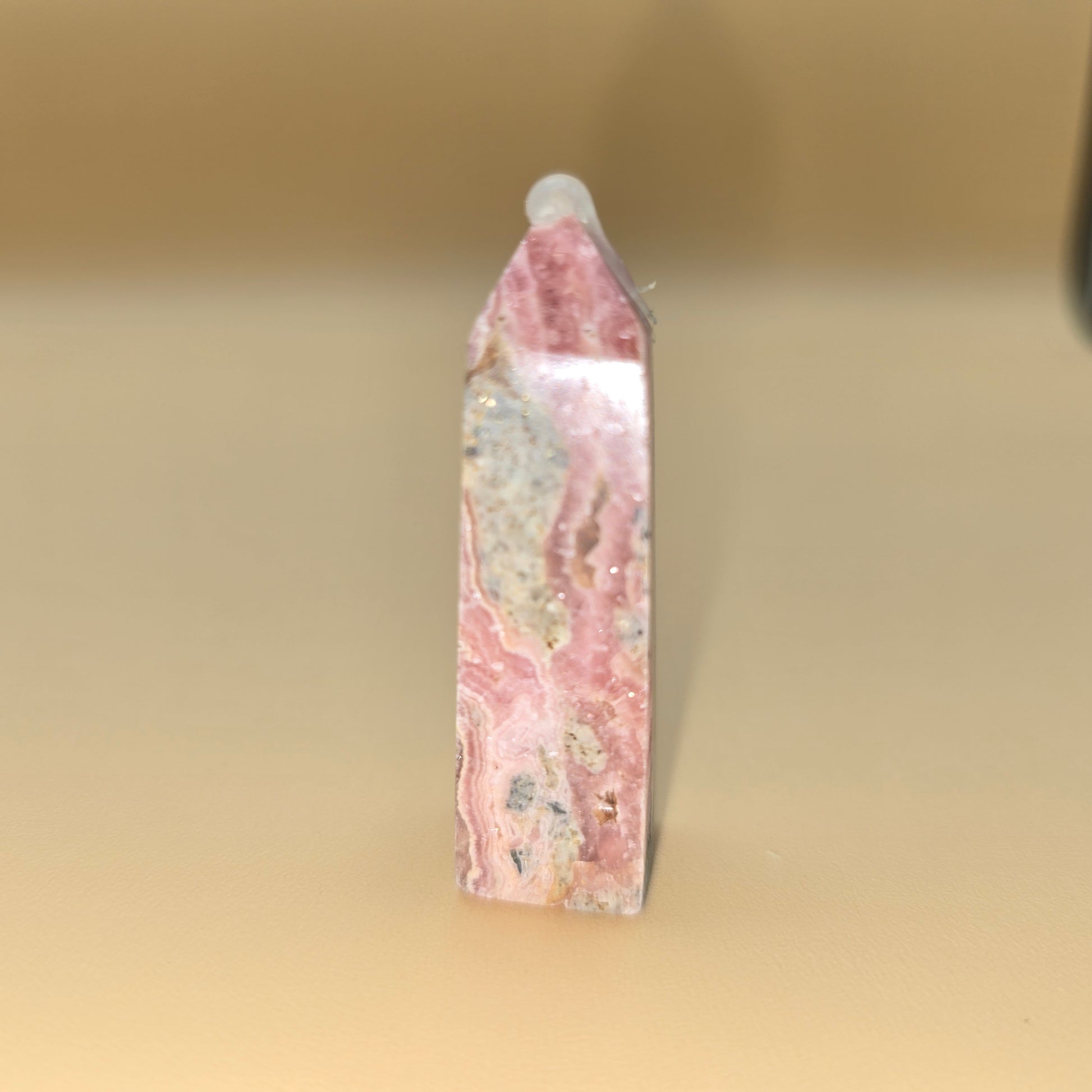 Experience the powerful healing properties of Rhodonite Tower. This stunning gemstone tower not only enhances your energy and vitality, but also promotes love, compassion, and emotional balance. With its unique composition of minerals, it is believed to release tension and anxiety, leaving you with a sense of calm and well-being. Add this beautiful tower to your crystal collection and reap its numerous benefits.