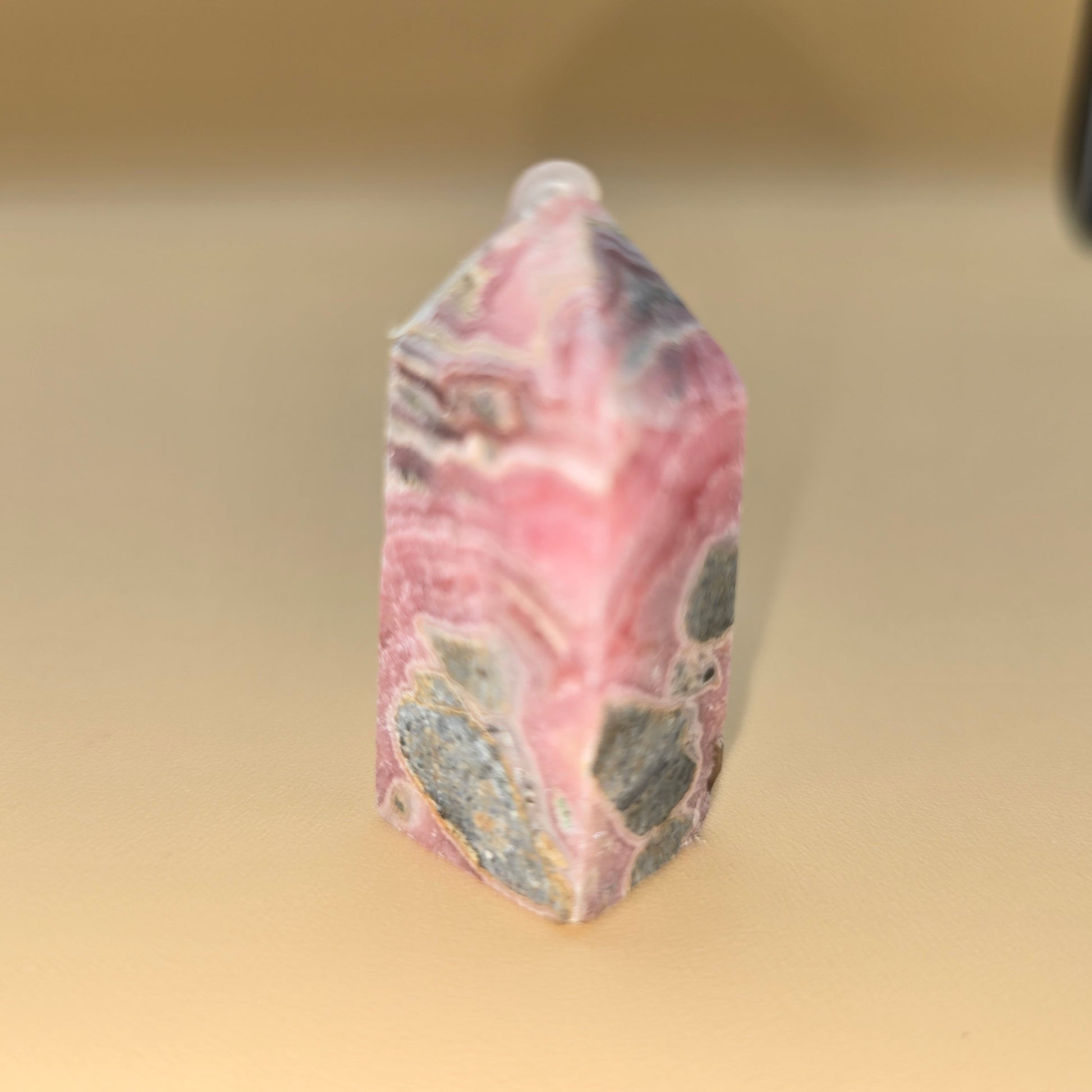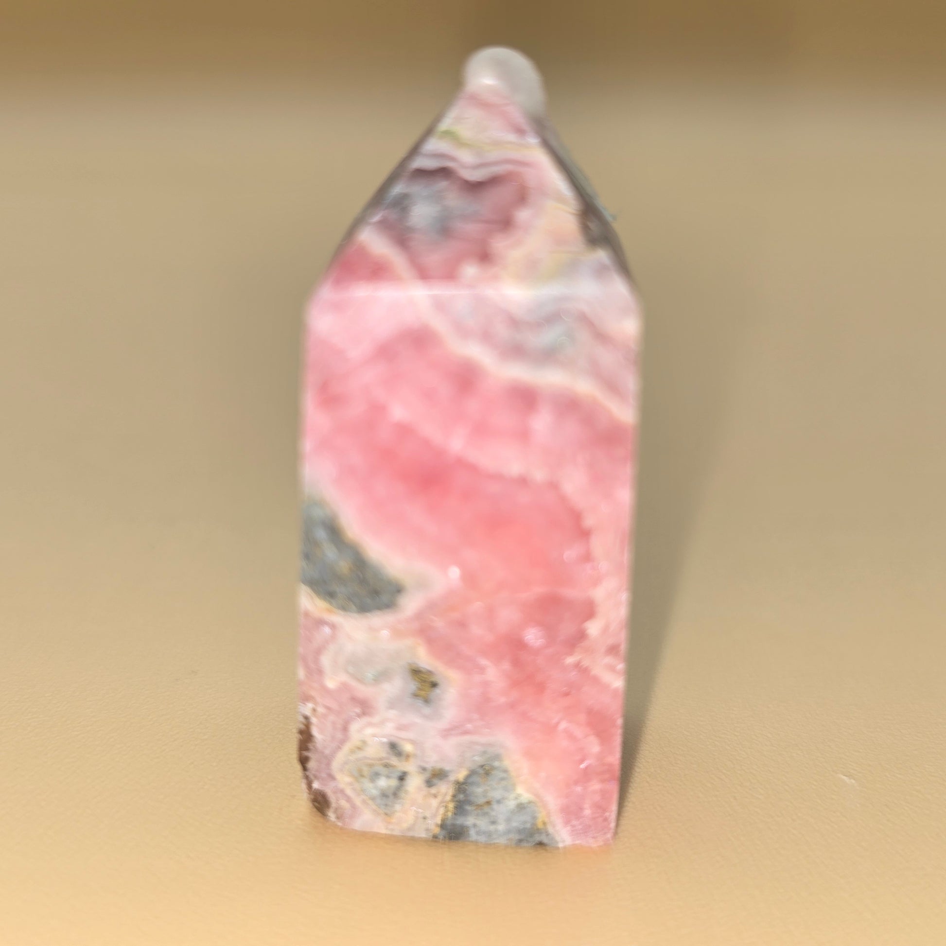 Experience the powerful healing properties of Rhodonite Tower. This stunning gemstone tower not only enhances your energy and vitality, but also promotes love, compassion, and emotional balance. With its unique composition of minerals, it is believed to release tension and anxiety, leaving you with a sense of calm and well-being. Add this beautiful tower to your crystal collection and reap its numerous benefits.