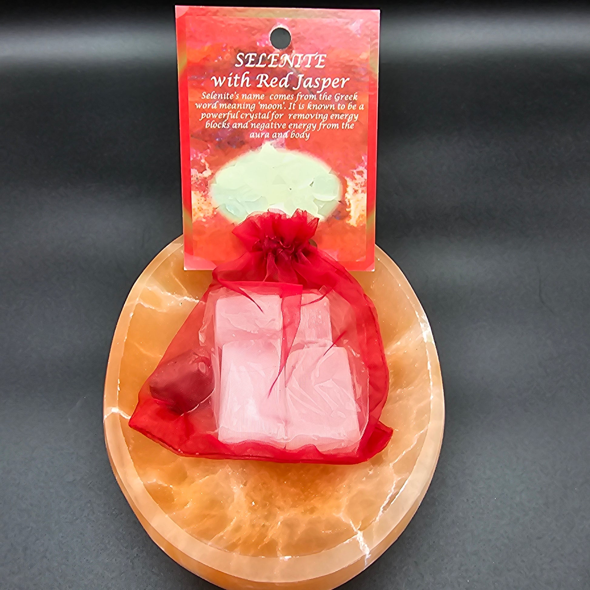 Selenite with Red Jasper