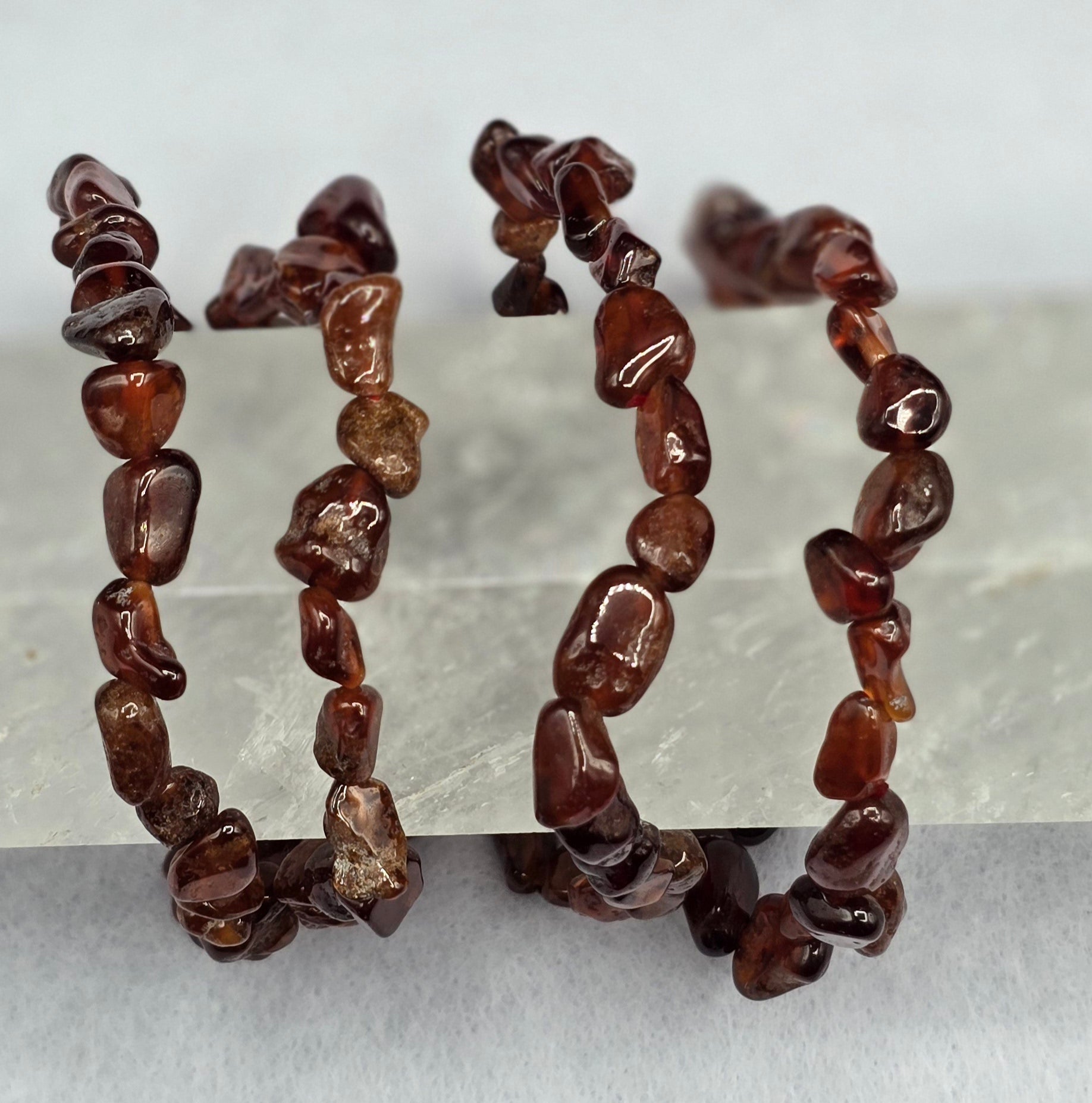 Dark Carnelian Stones: The bracelet is adorned with small, tumbled Dark Carnelian stones, showcasing deep, rich hues ranging from reddish-brown to almost black. The dark intensity of the Carnelian stones adds a touch of mystery and strength to the bracelet.