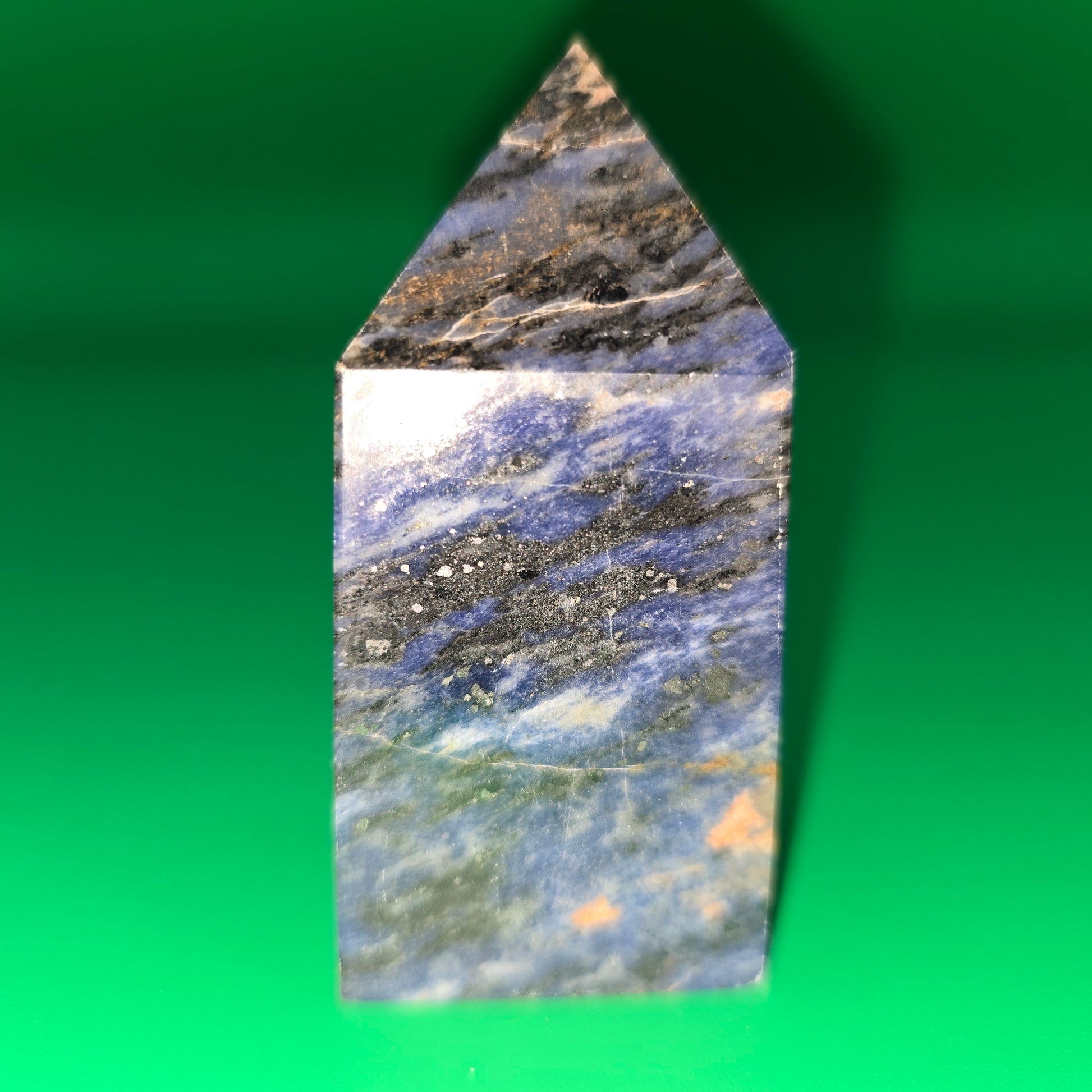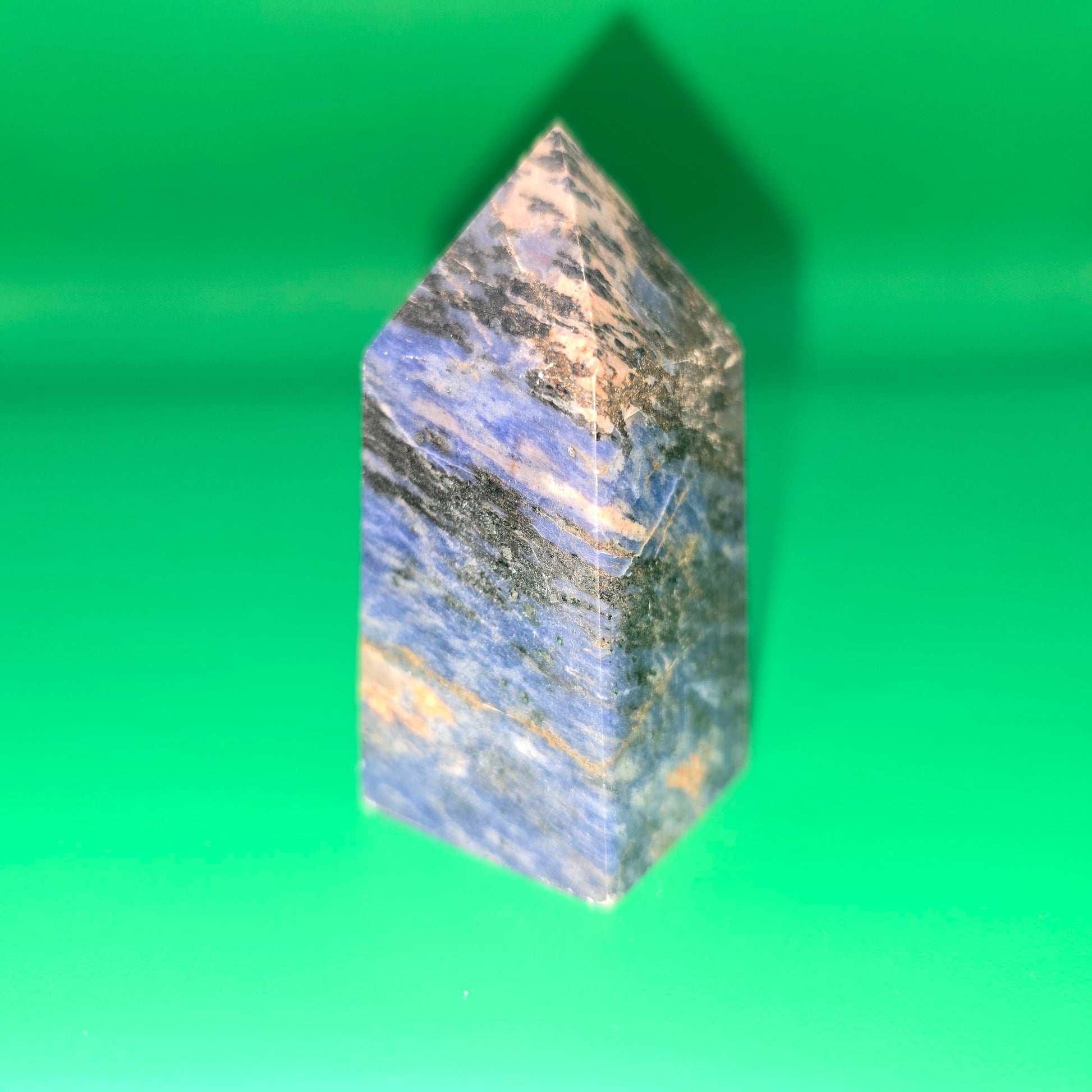Using a sodalite tower in your home or workspace can help enhance communication, mental clarity, and emotional balance, creating a harmonious and productive environment.
